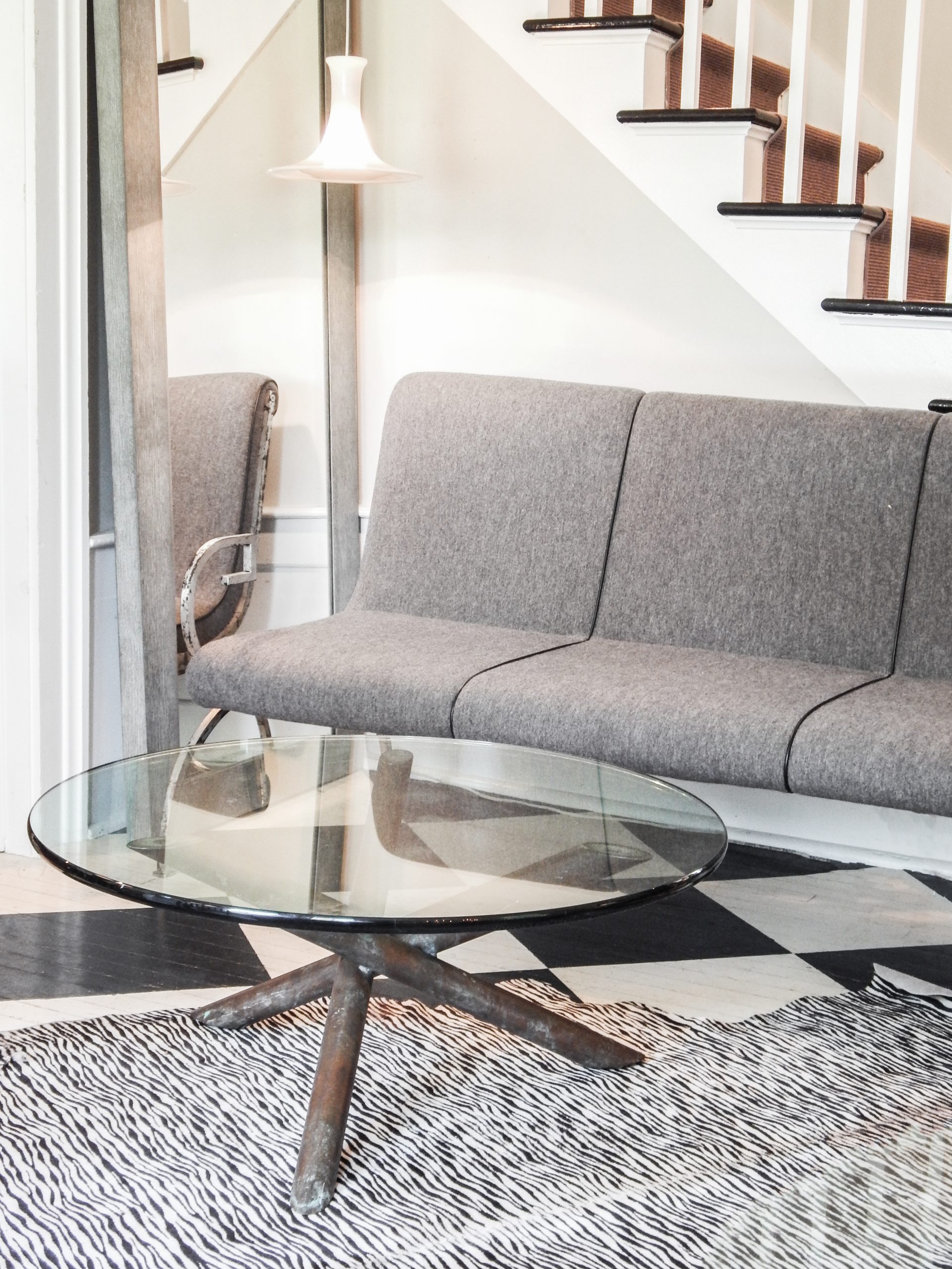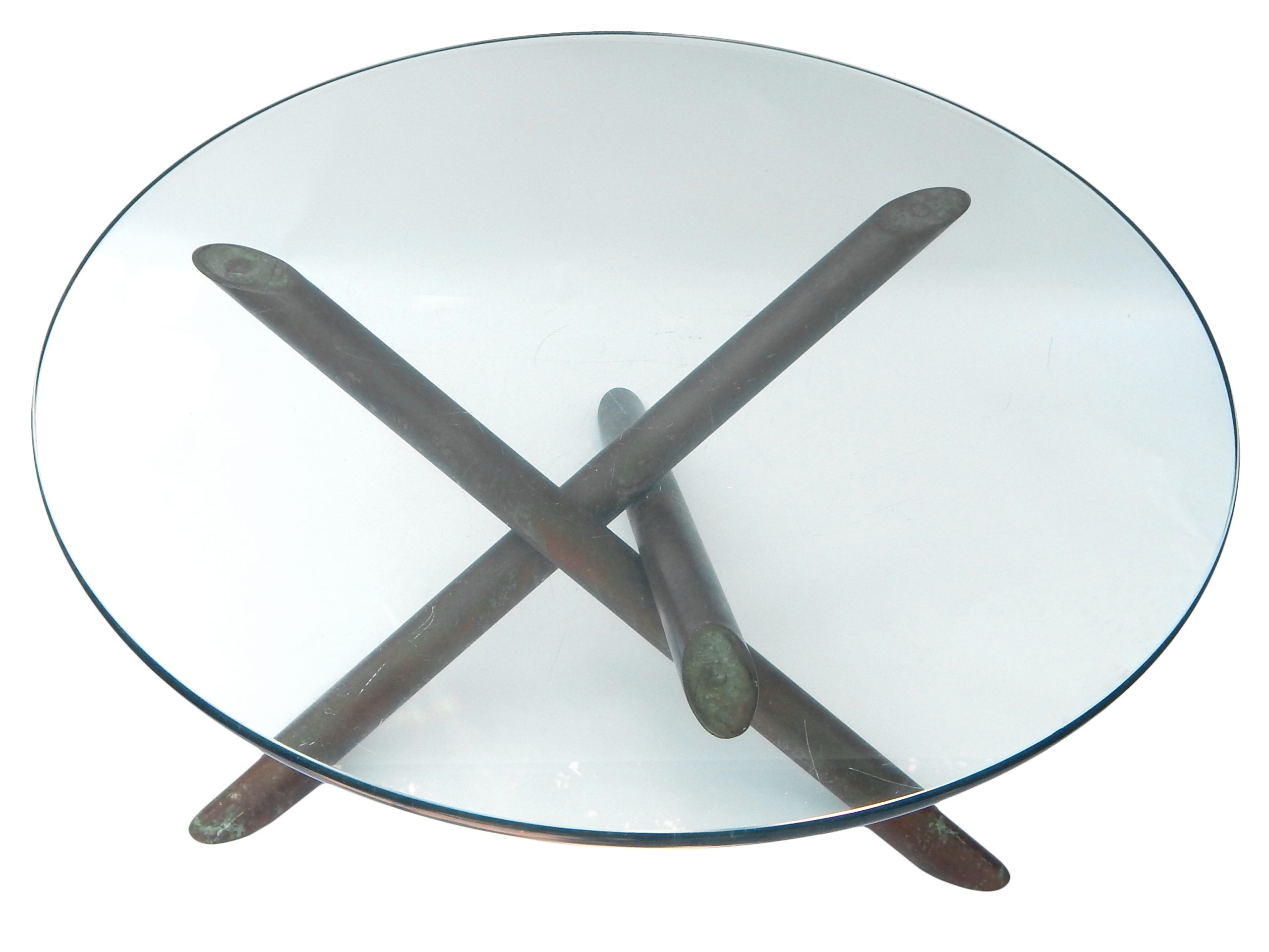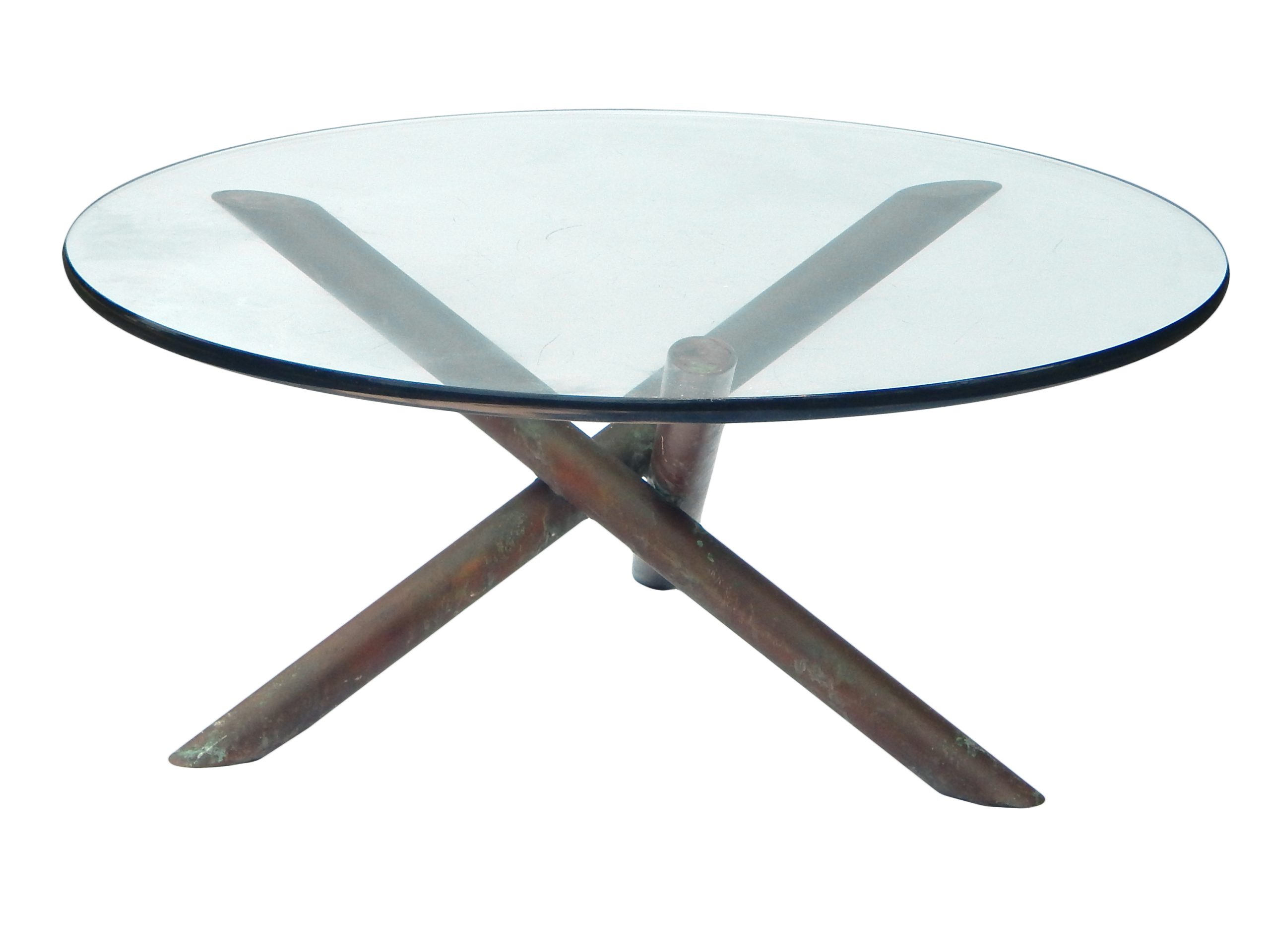Small Late 20th Century Coffee Table with Sculptural Metal Base & Glass Top