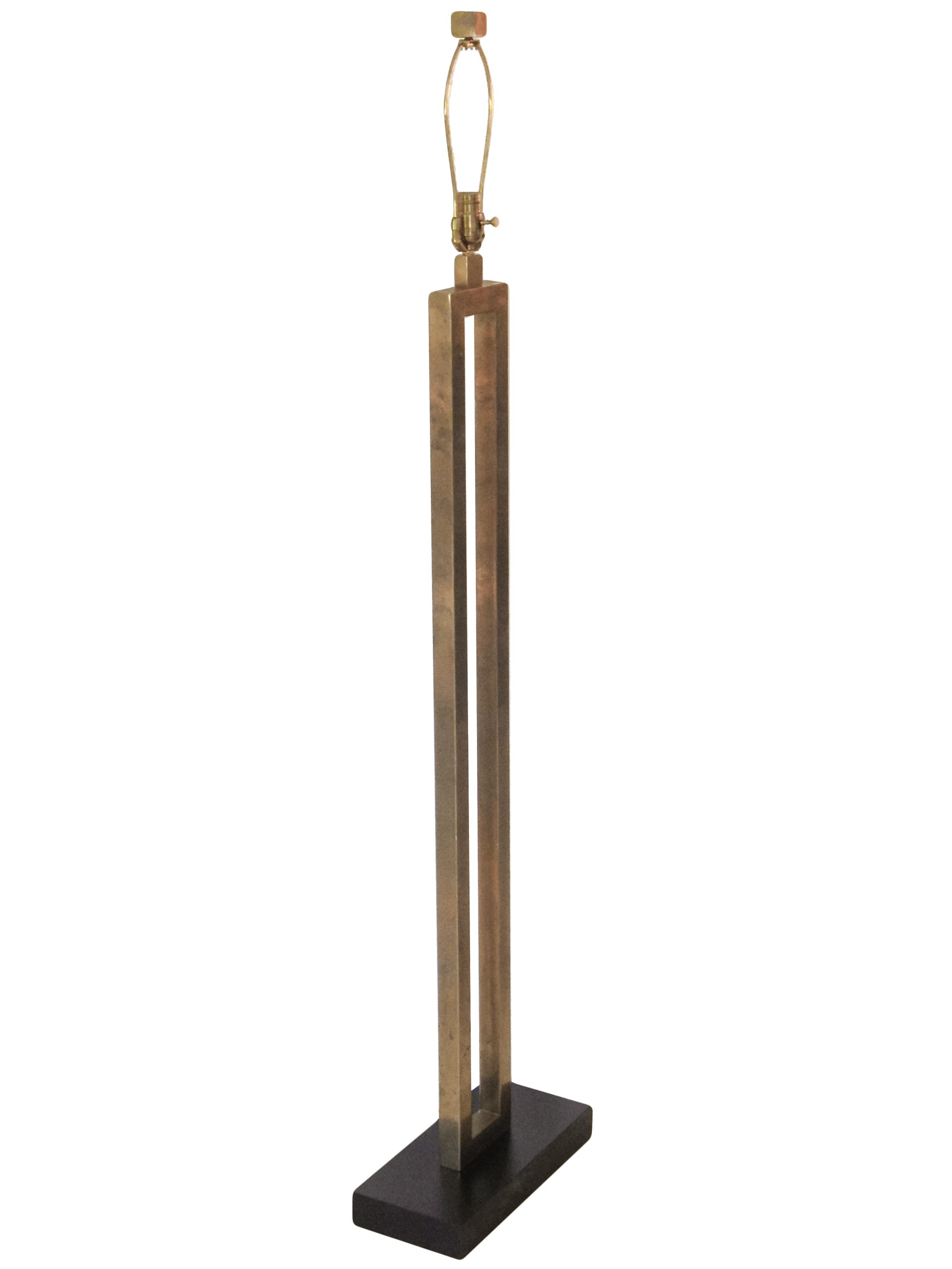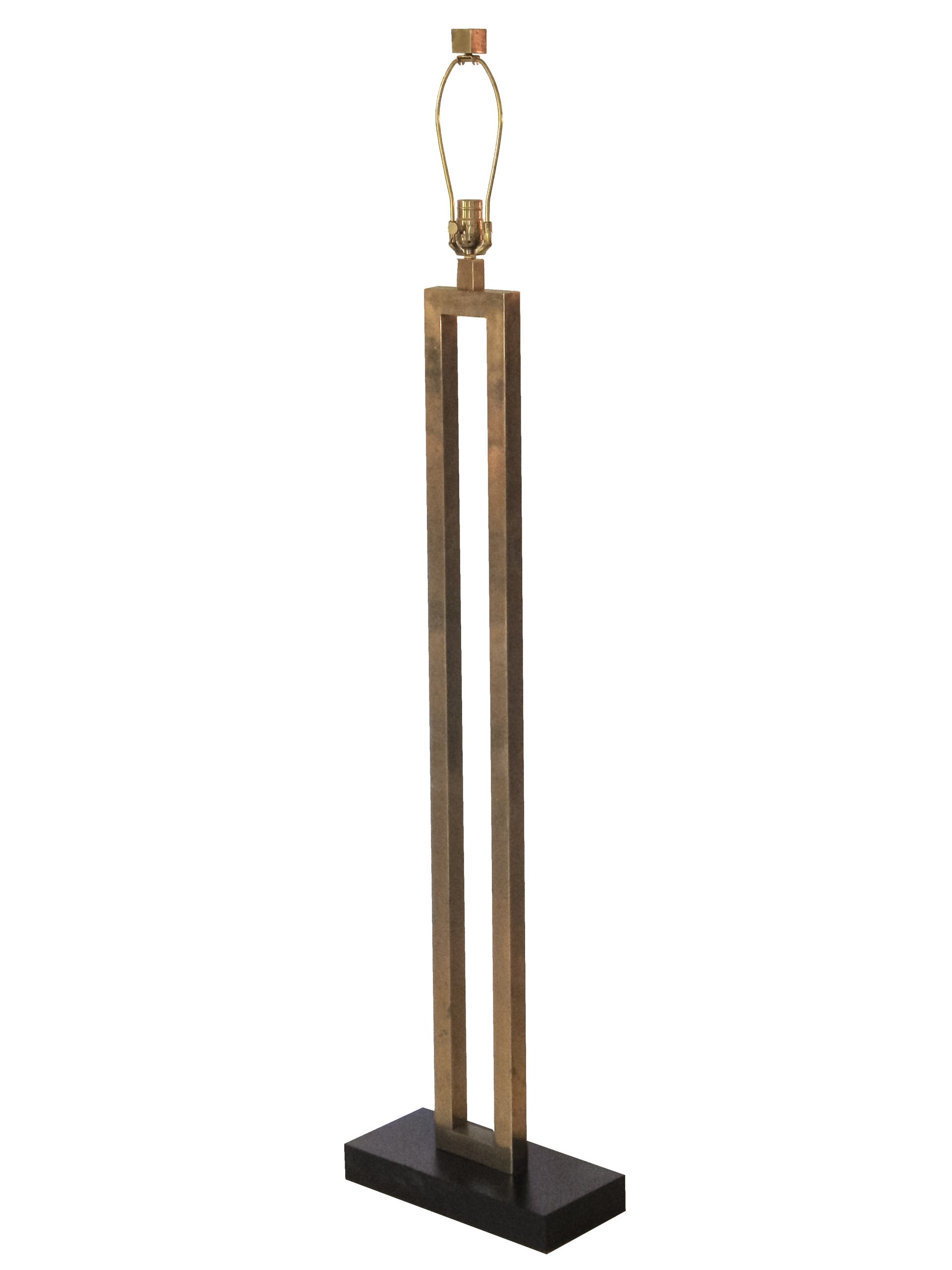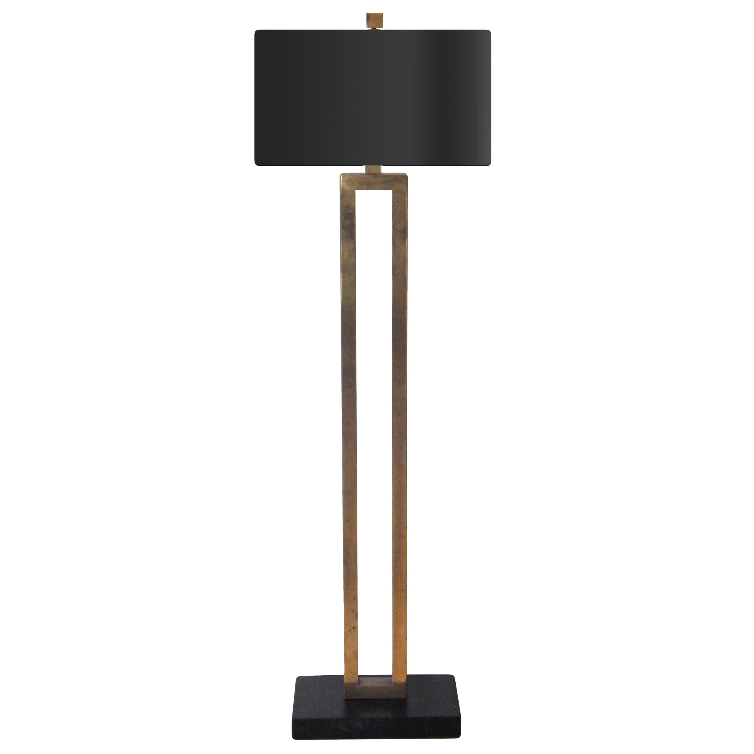 Minimalist, Late 20th Century Brass-Toned Modern Floor Lamp with Black Base