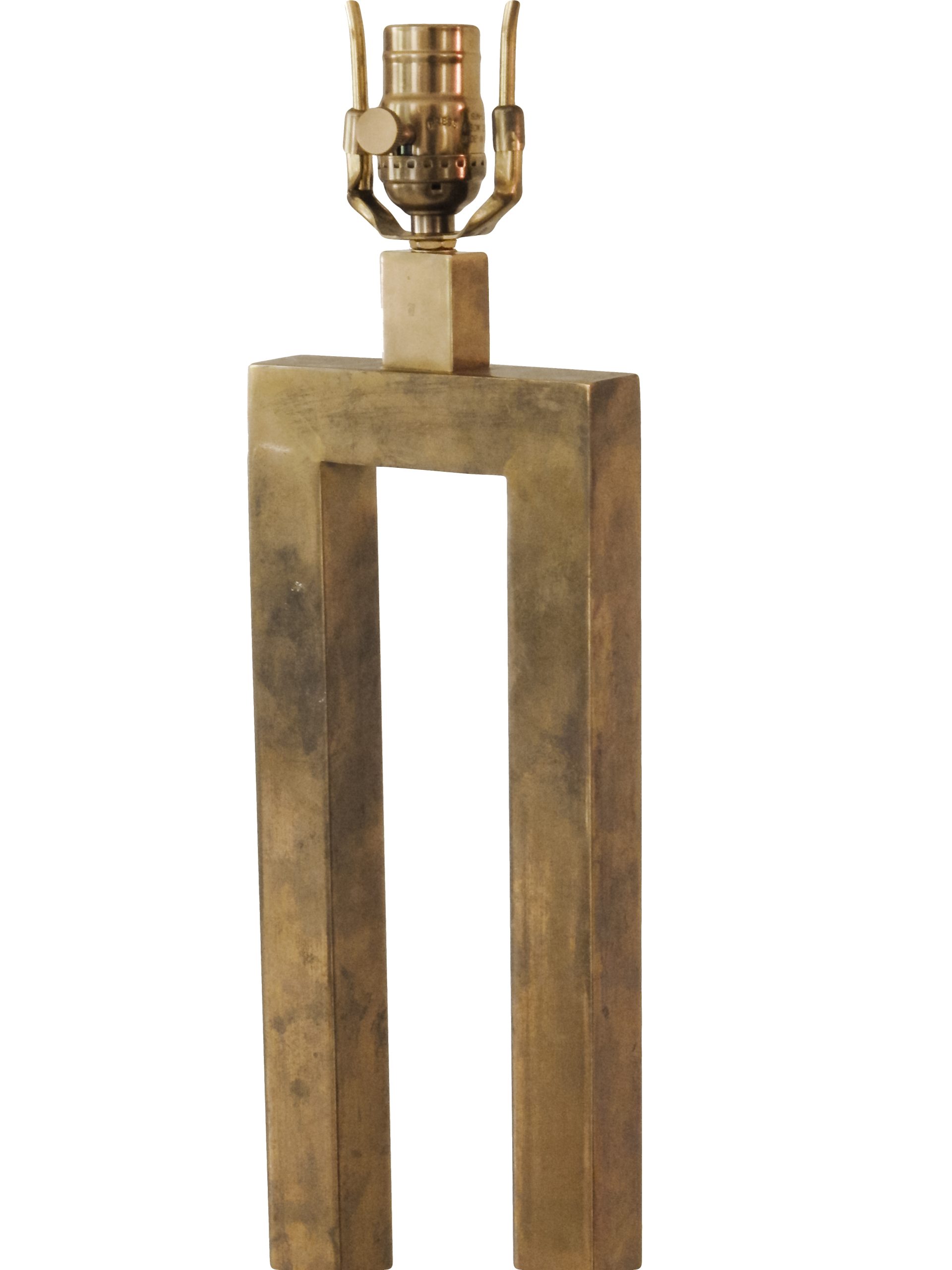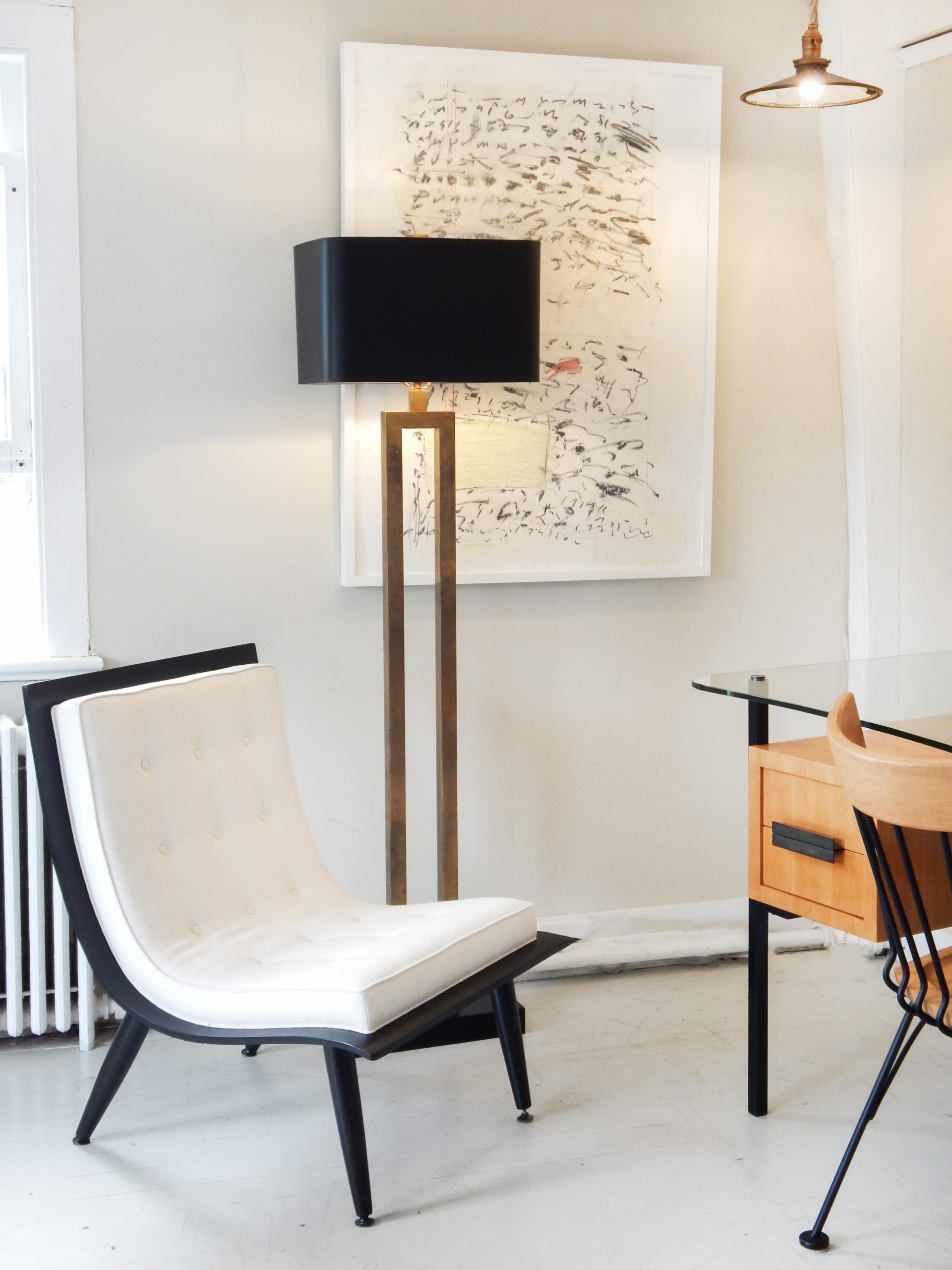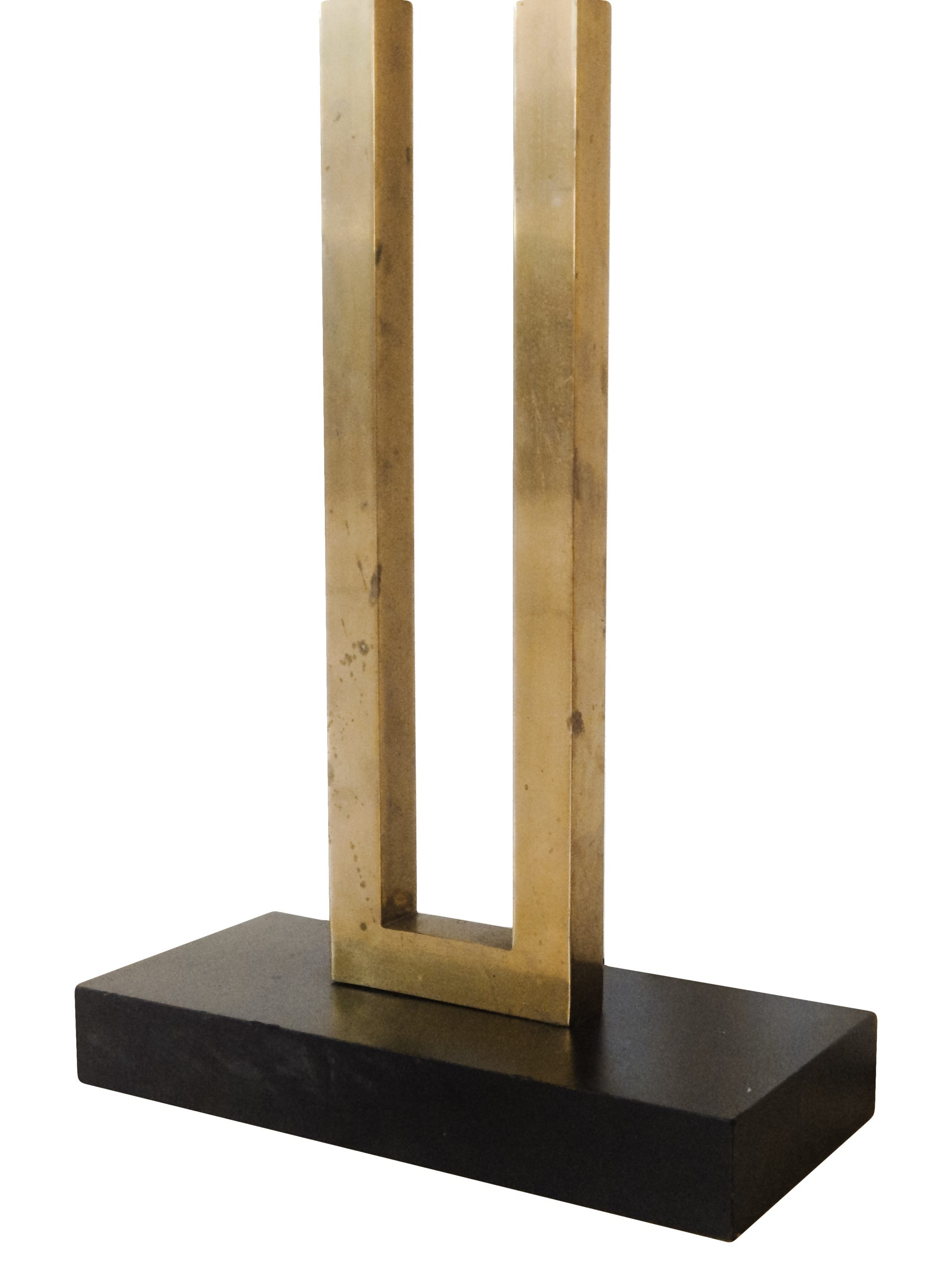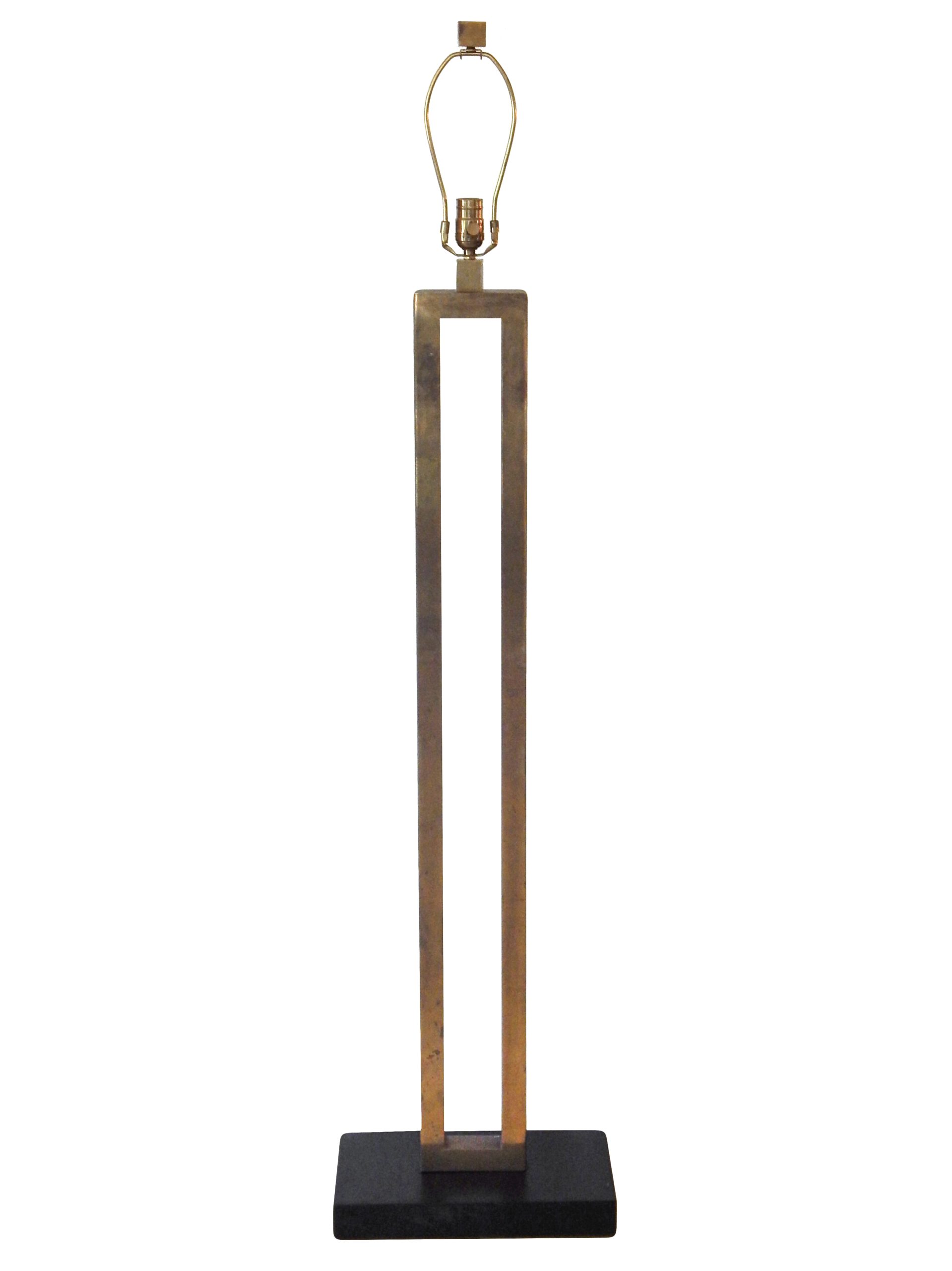 Minimalist, Late 20th Century Brass-Toned Modern Floor Lamp with Black Base