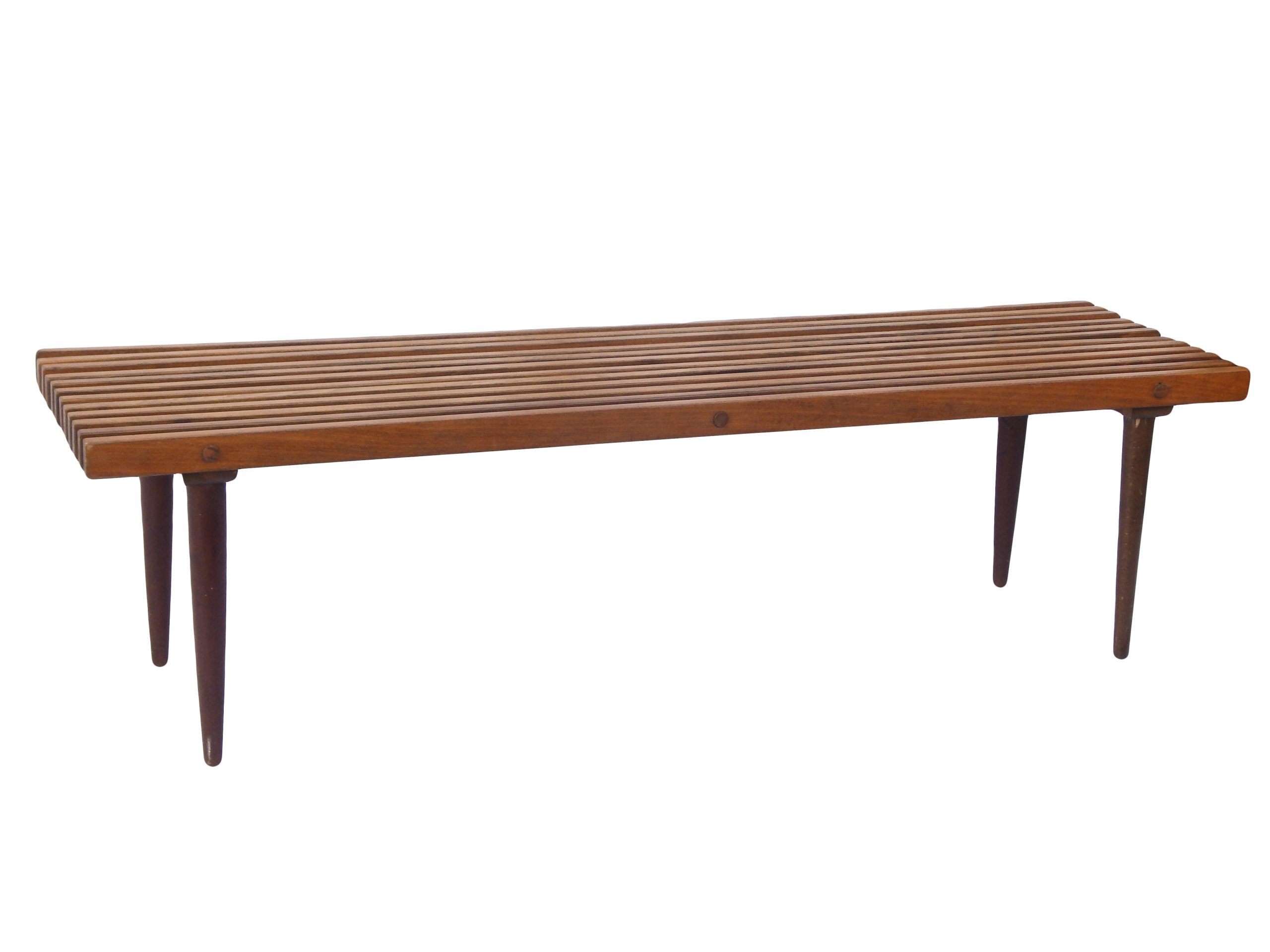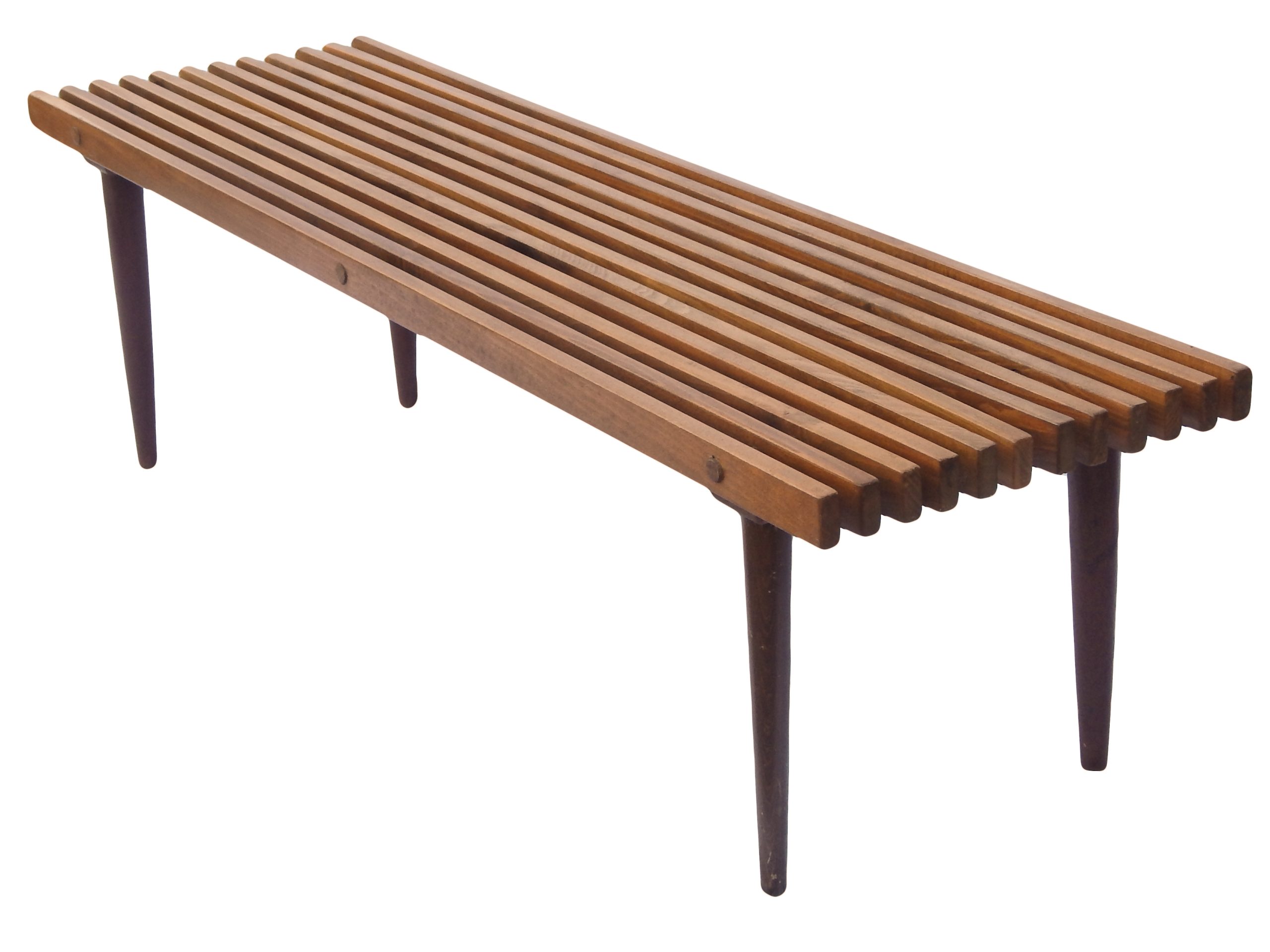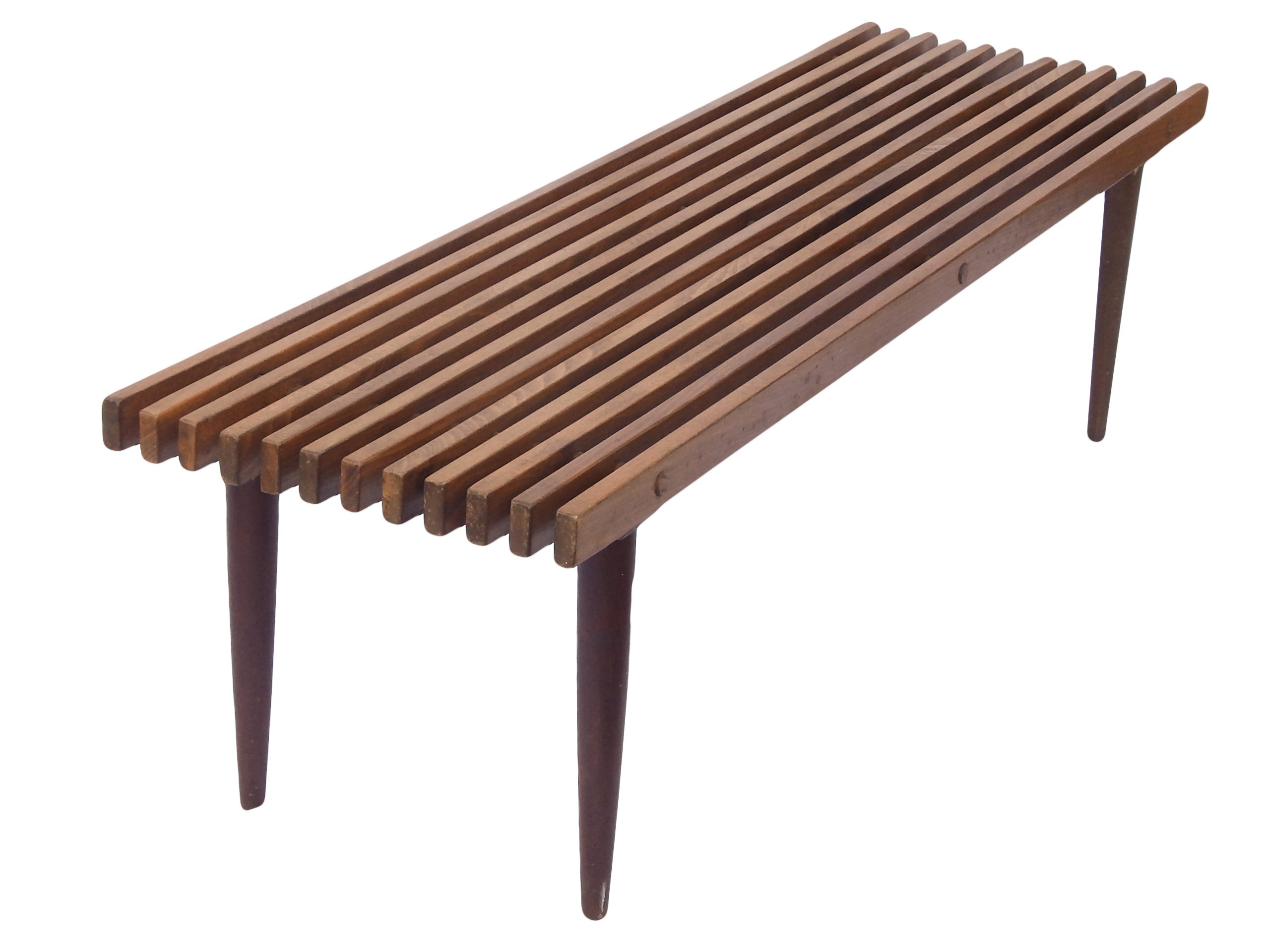 Modernist, Mid Century Wood Slat Bench or Coffee Table with Dark Stain, In The Style of George Nelson