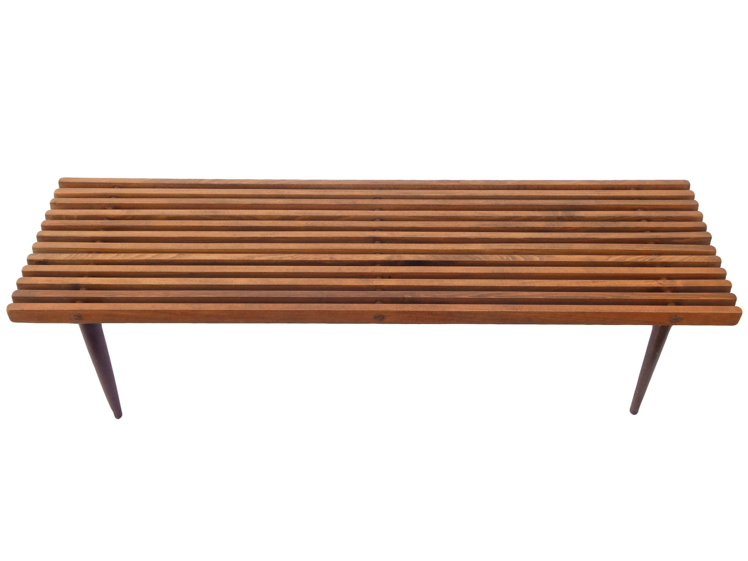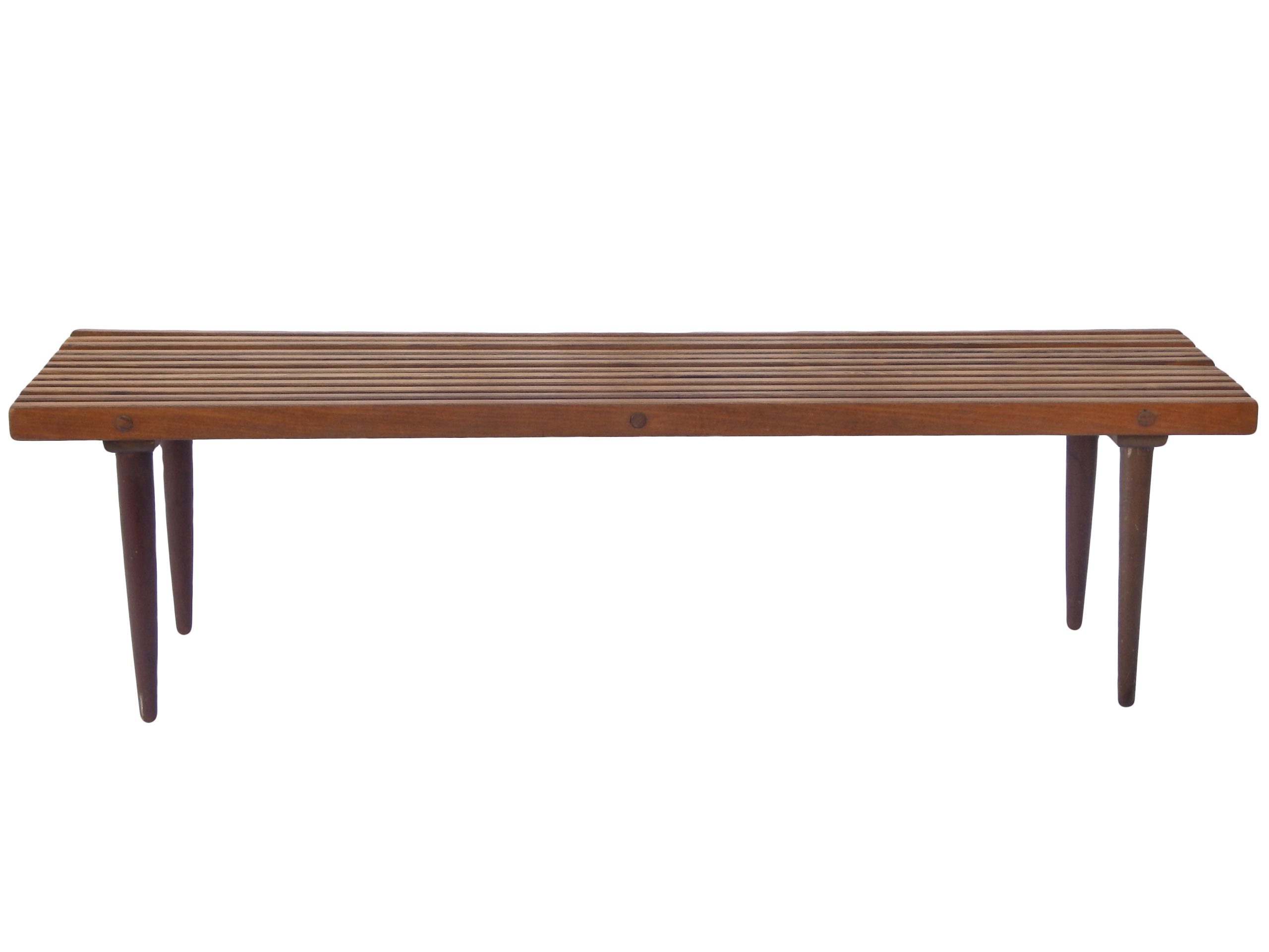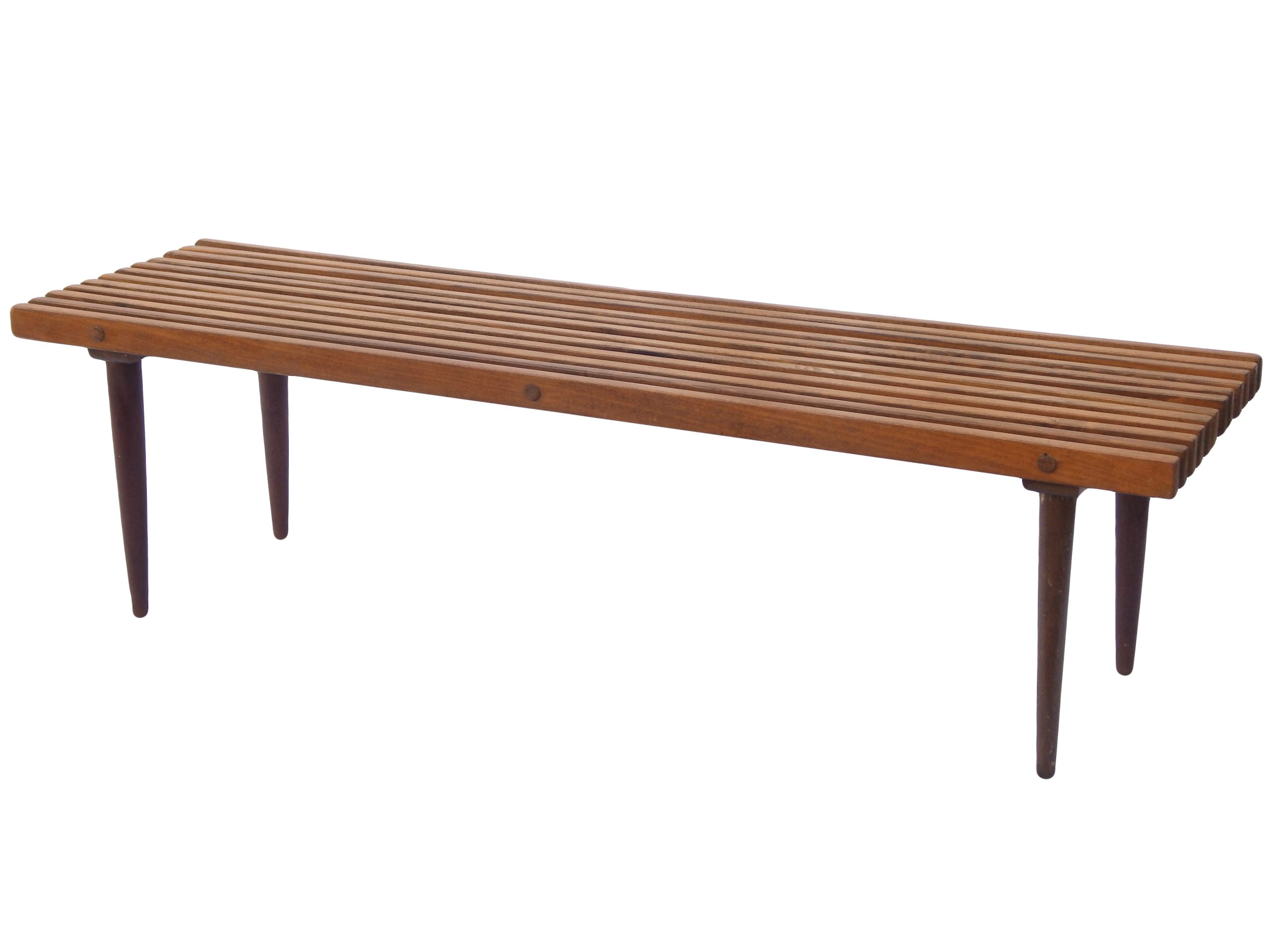 Modernist, Mid Century Wood Slat Bench or Coffee Table with Dark Stain, In The Style of George Nelson