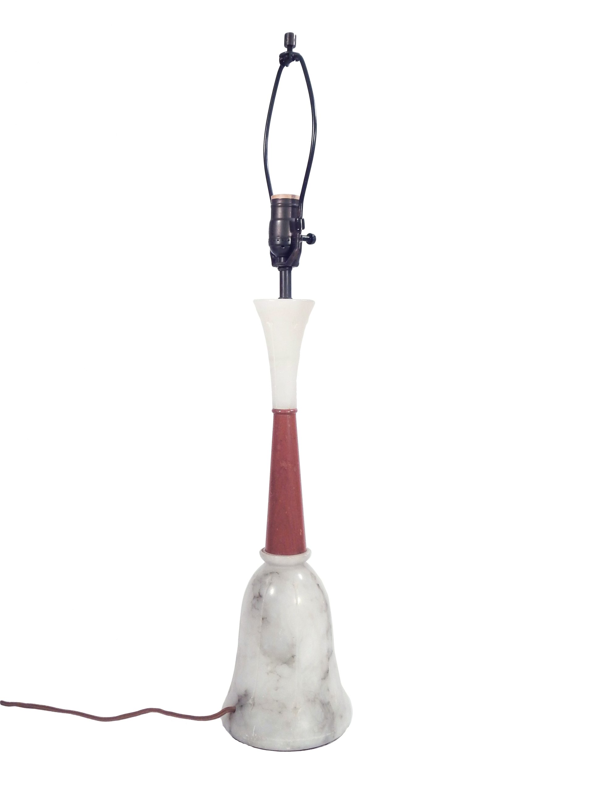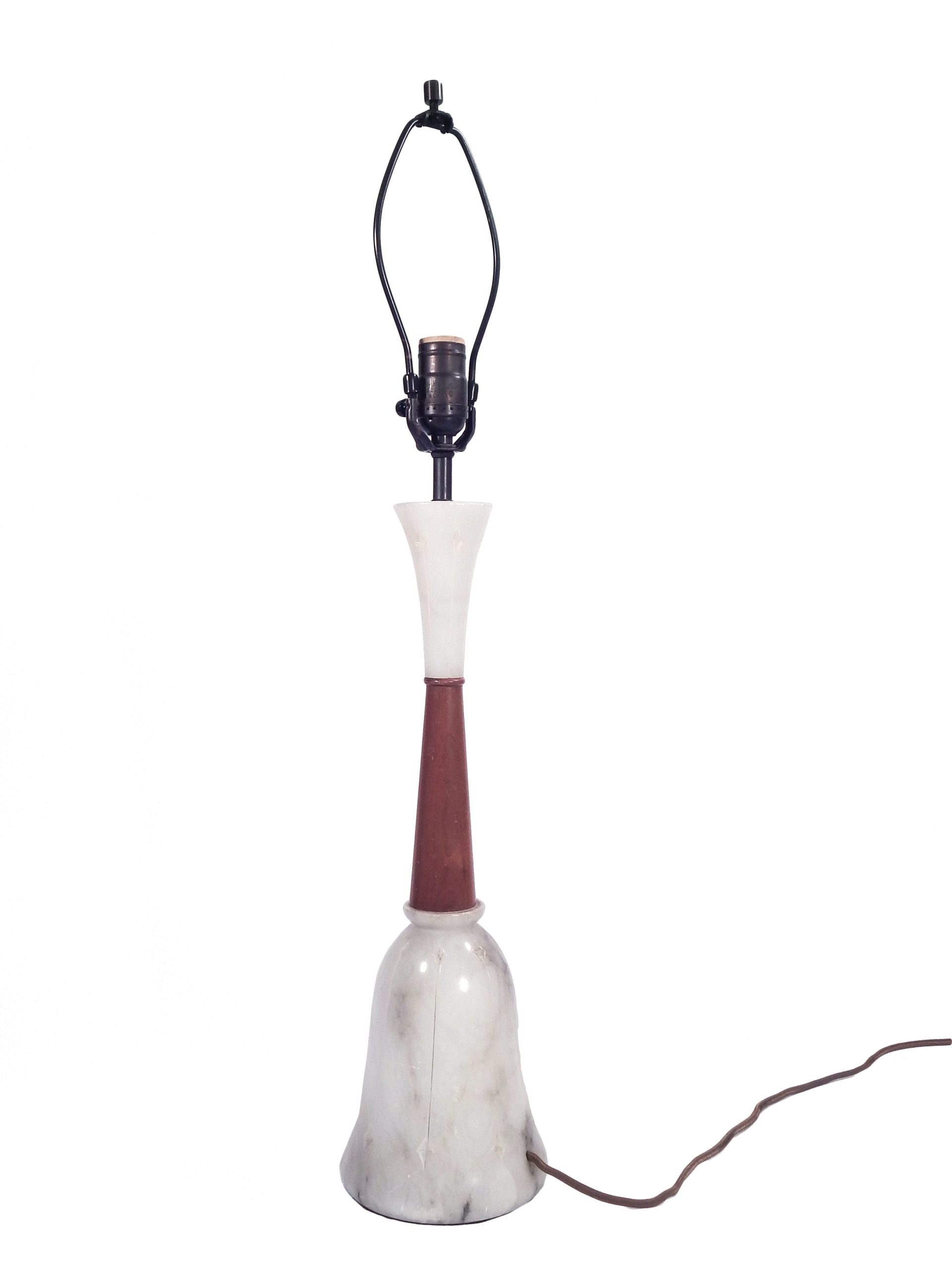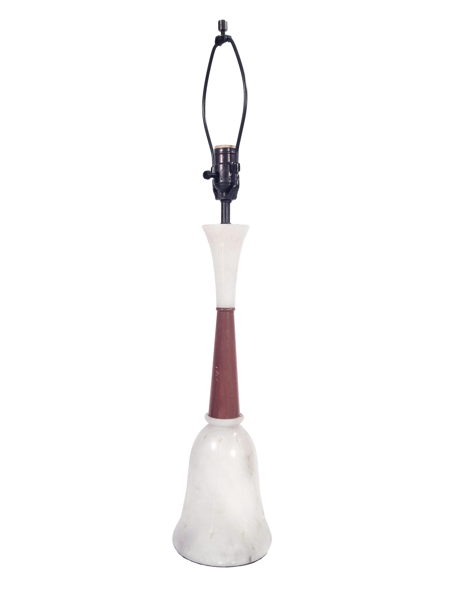 Matching Pair of Mid-Century Marble and Teak Table Lamps