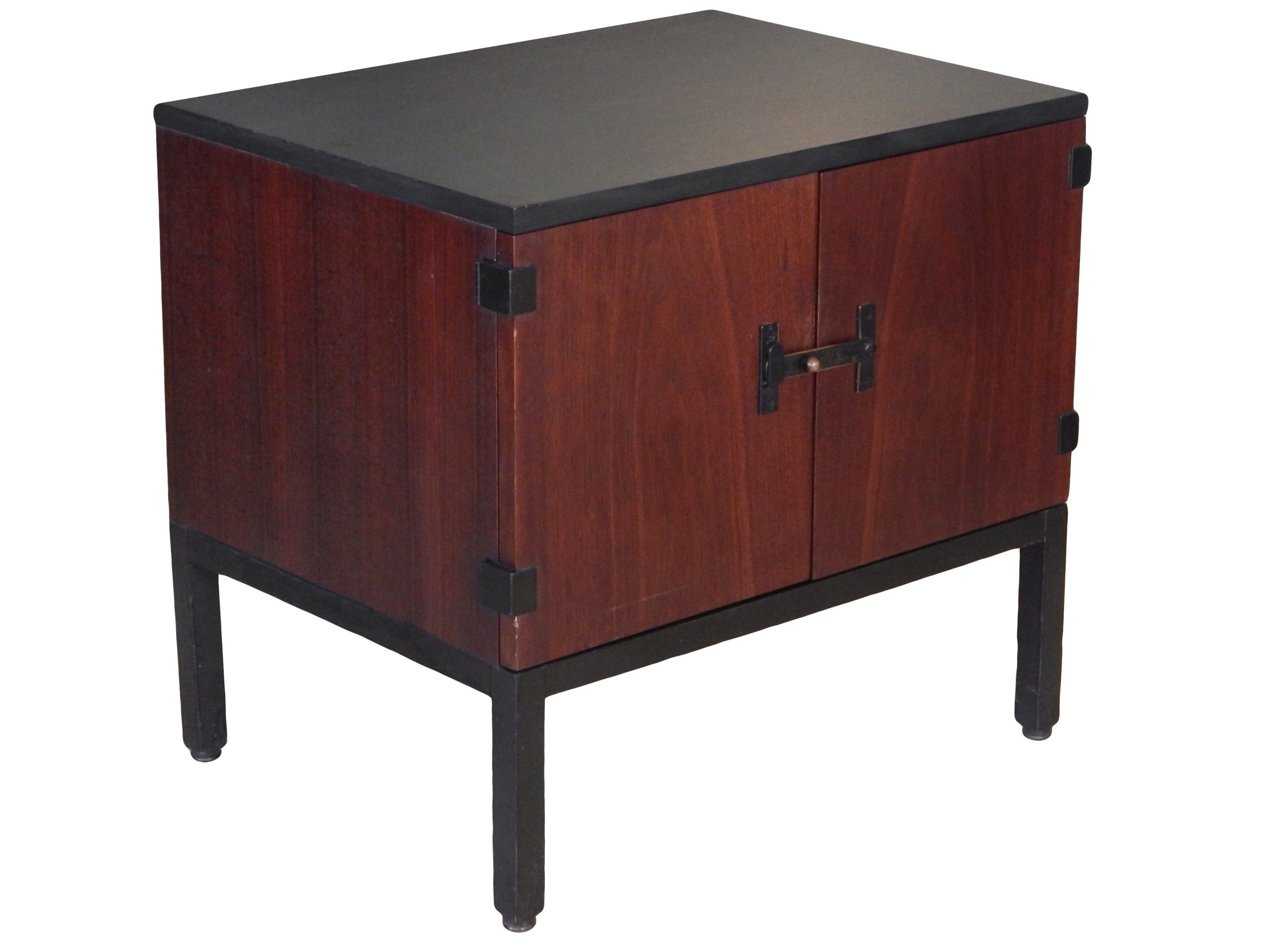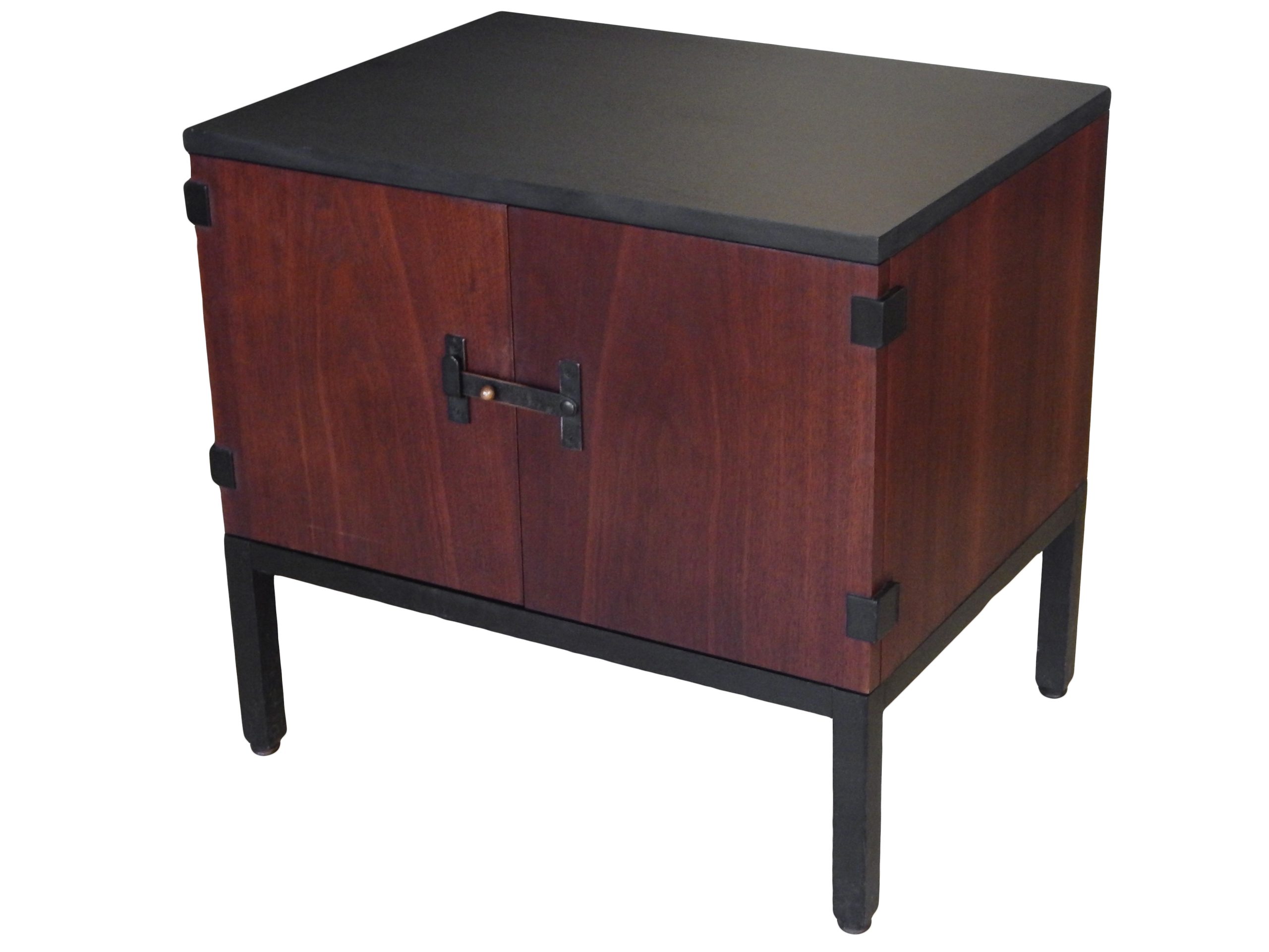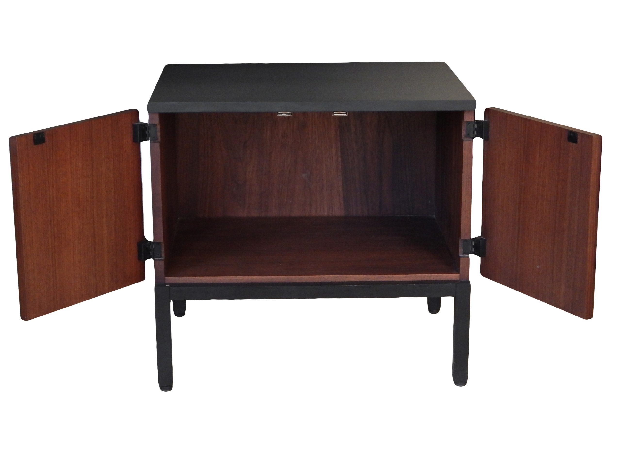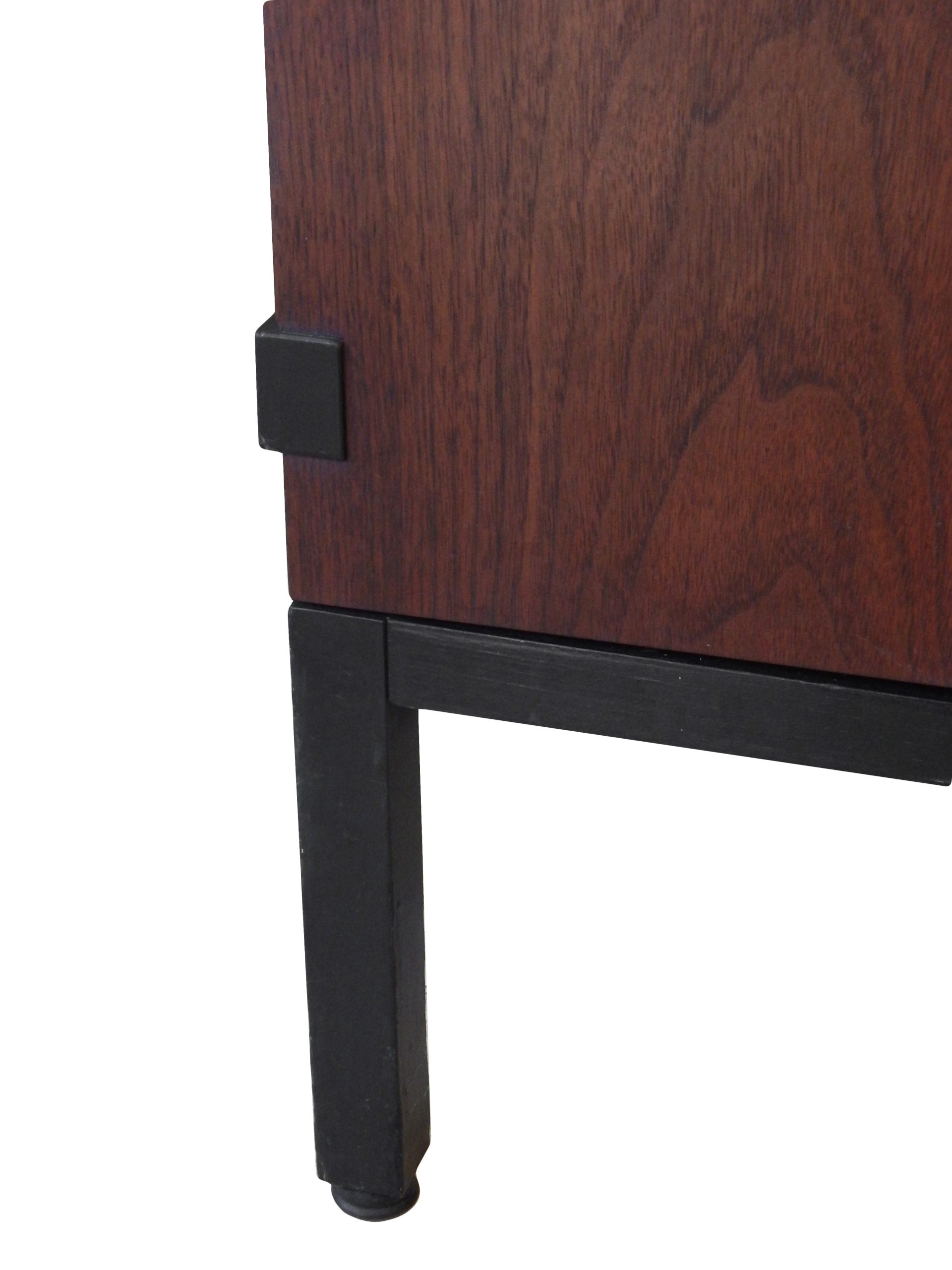 Matching Pair of  Cherry Wood Nightstands with Black Painted Top & Legs by Milo Baughman for Directional