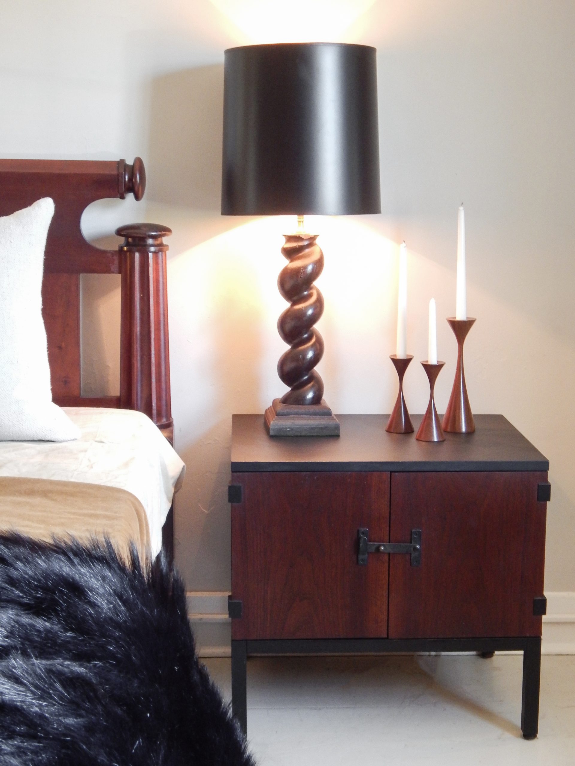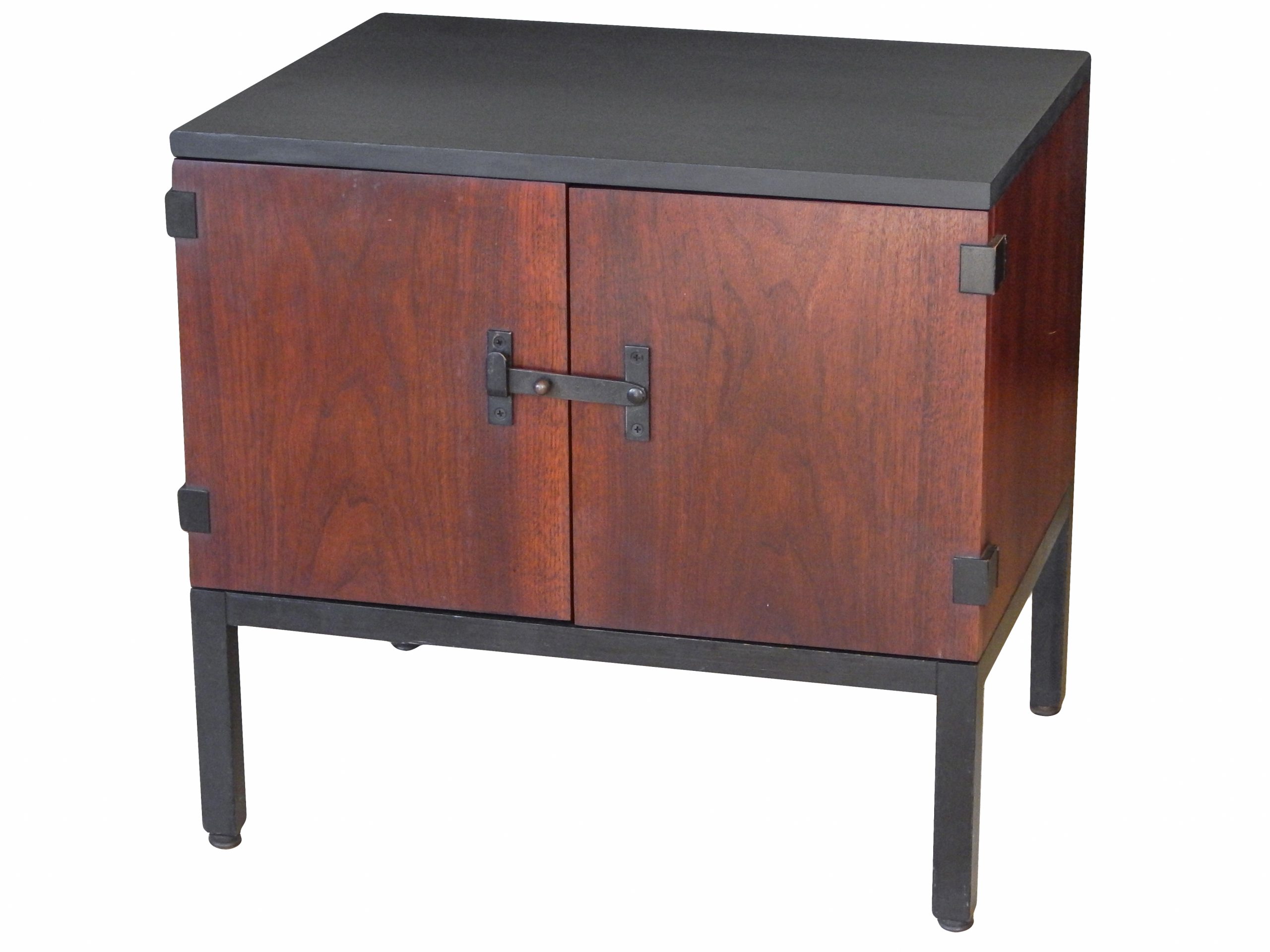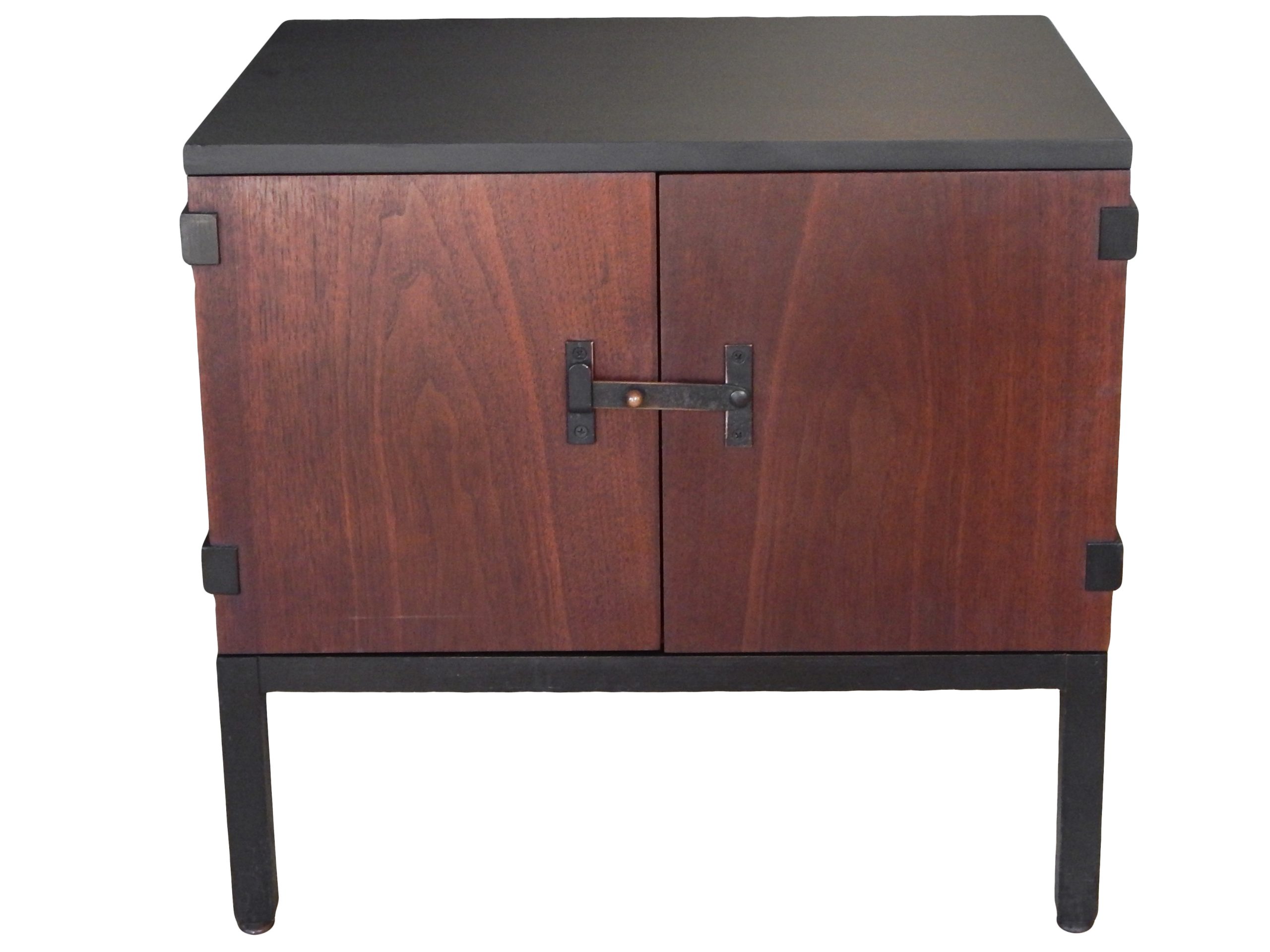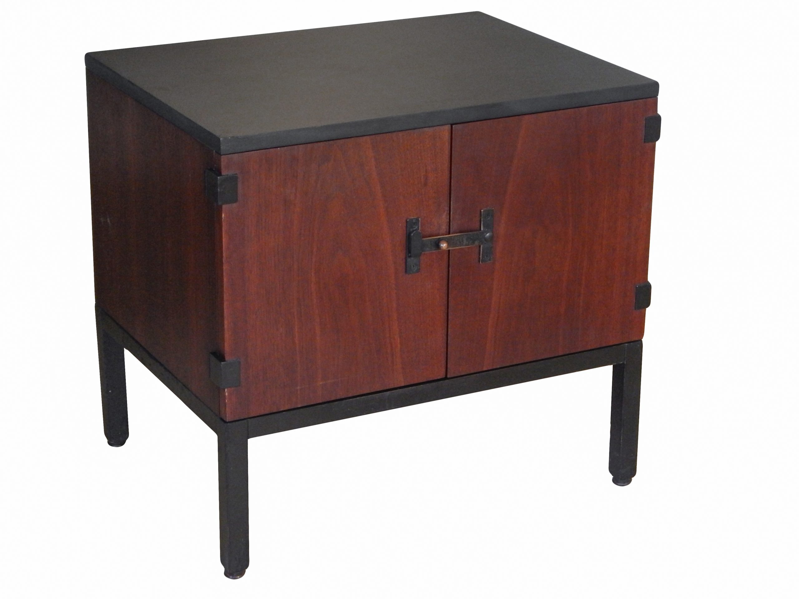 Matching Pair of  Cherry Wood Nightstands with Black Painted Top & Legs by Milo Baughman for Directional