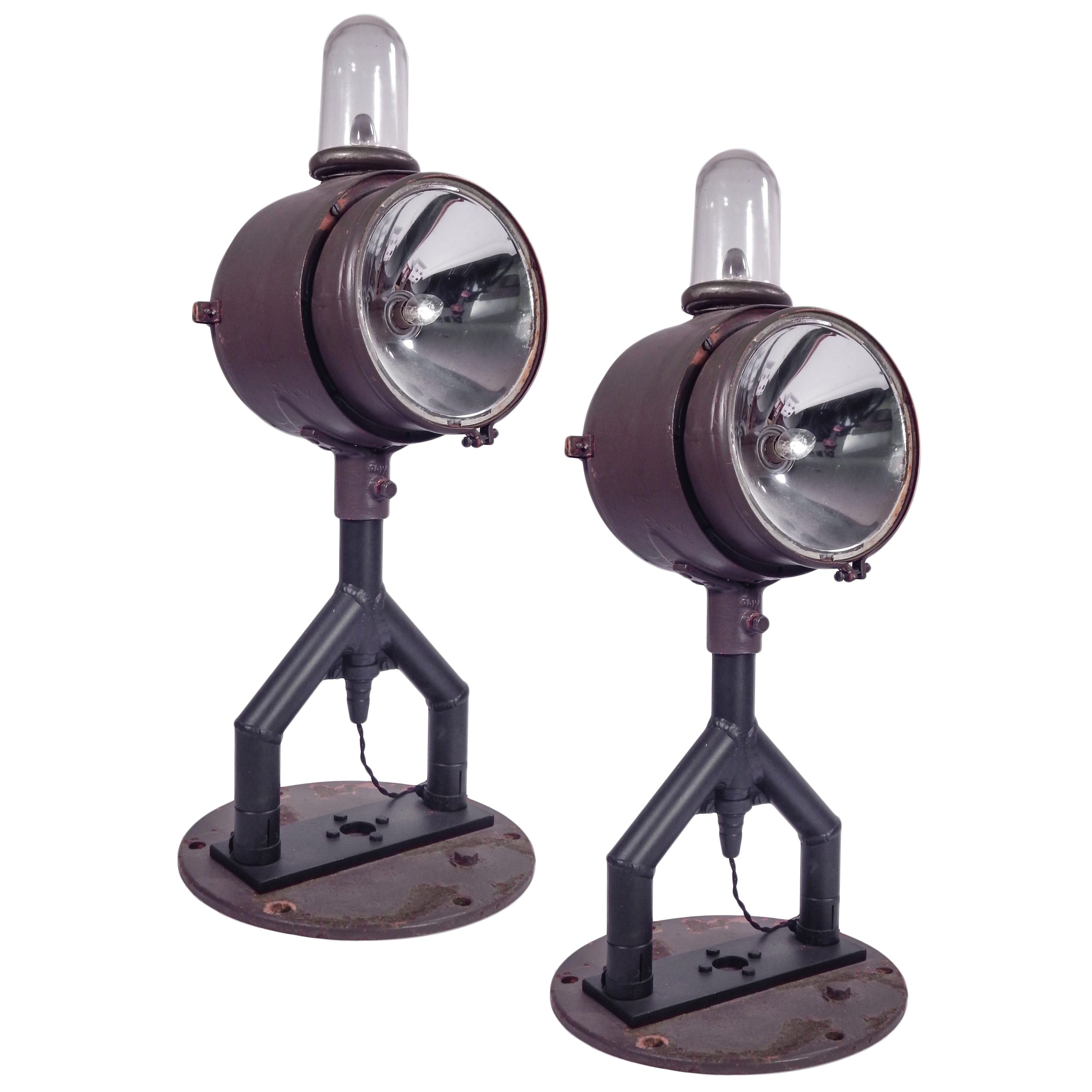 Pair of Early 20th Century Runway Lights, Rewired as Table Lamps