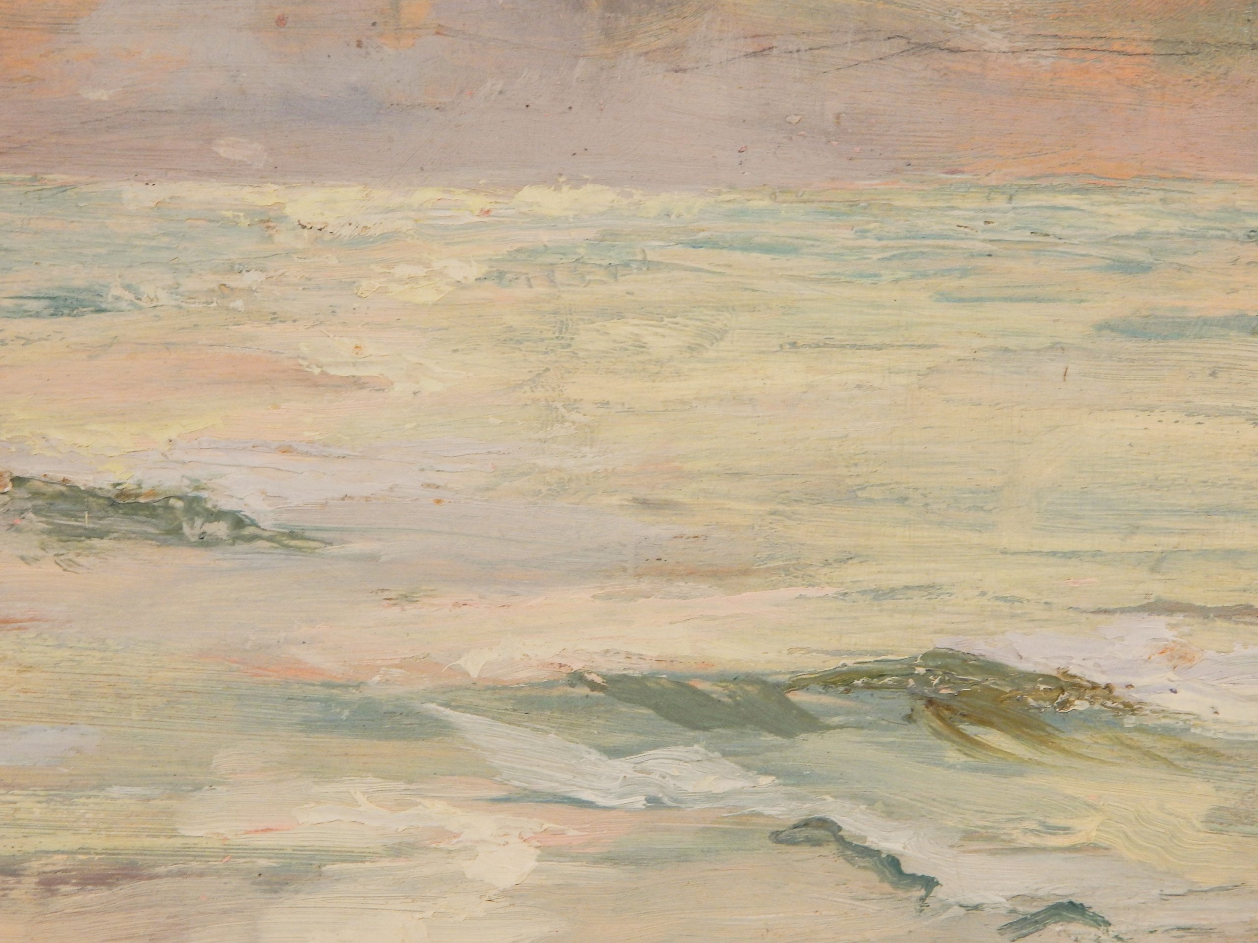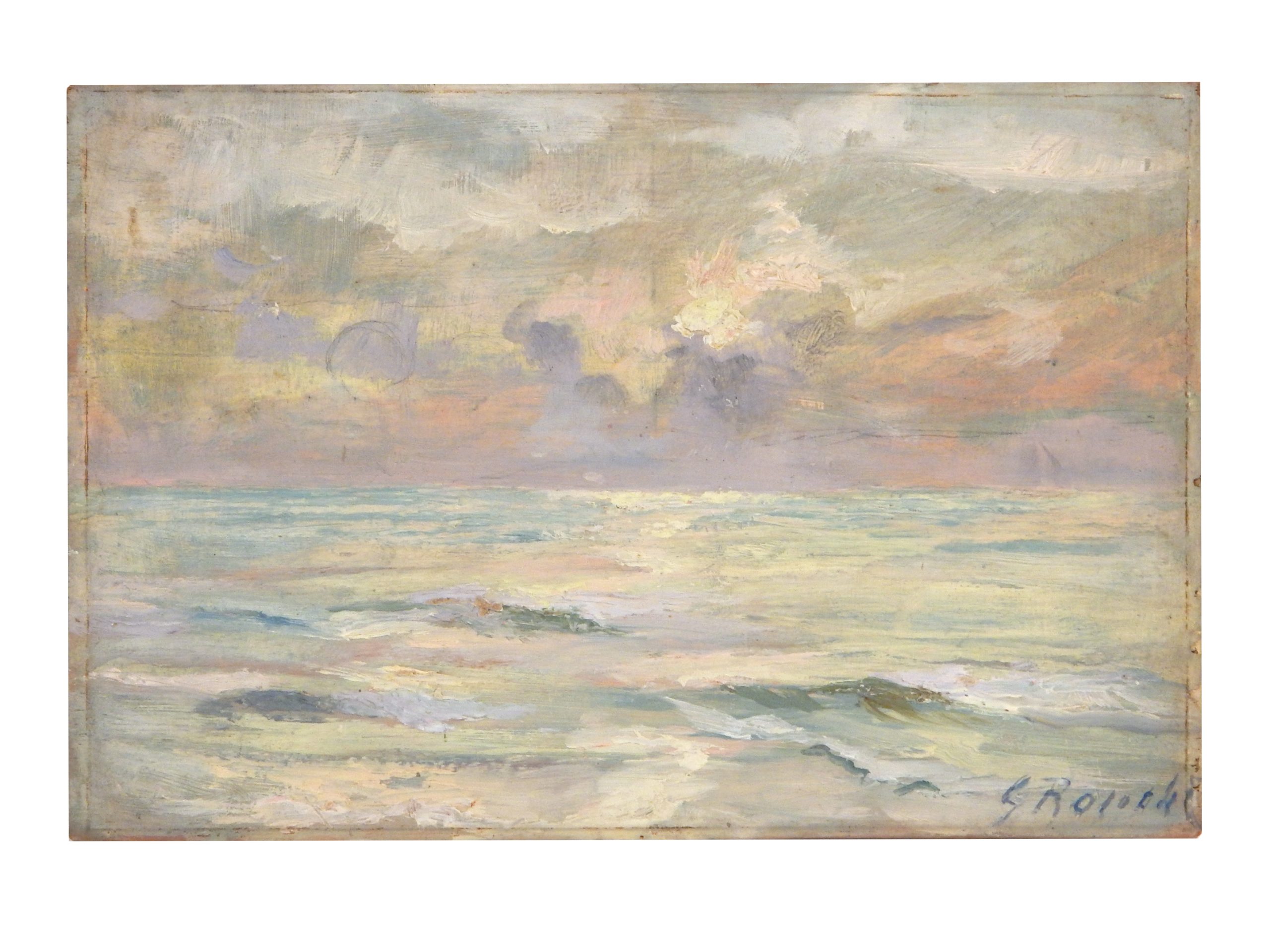 Cheerful Mid Century Sunset Seascape Painted by S. Roloch