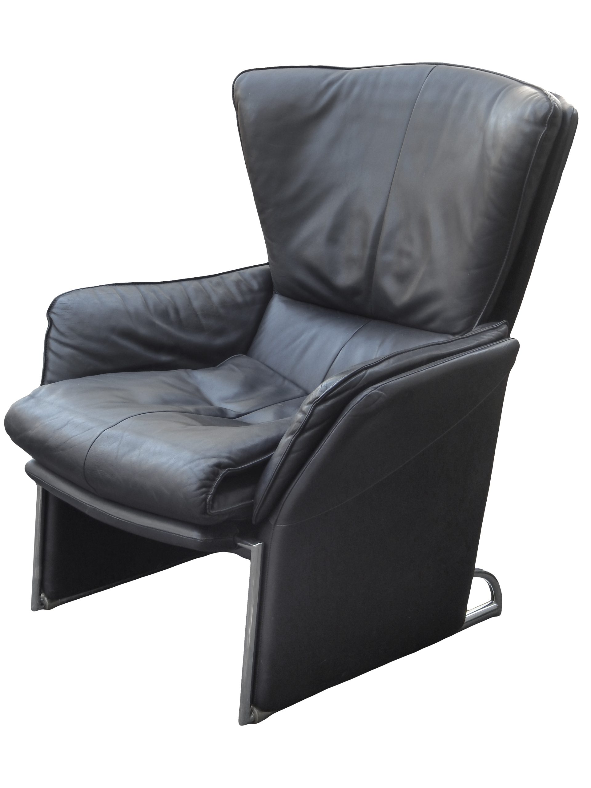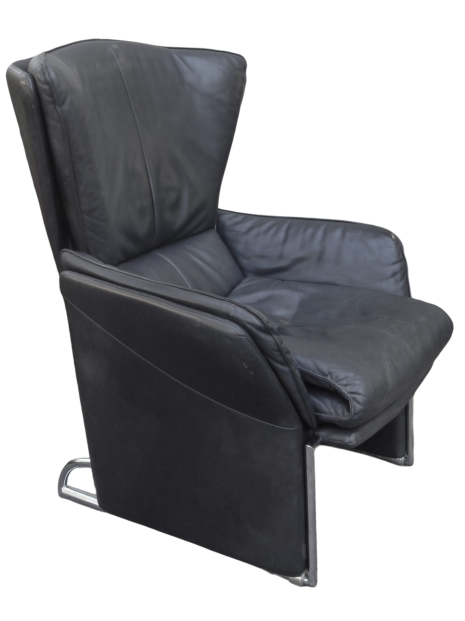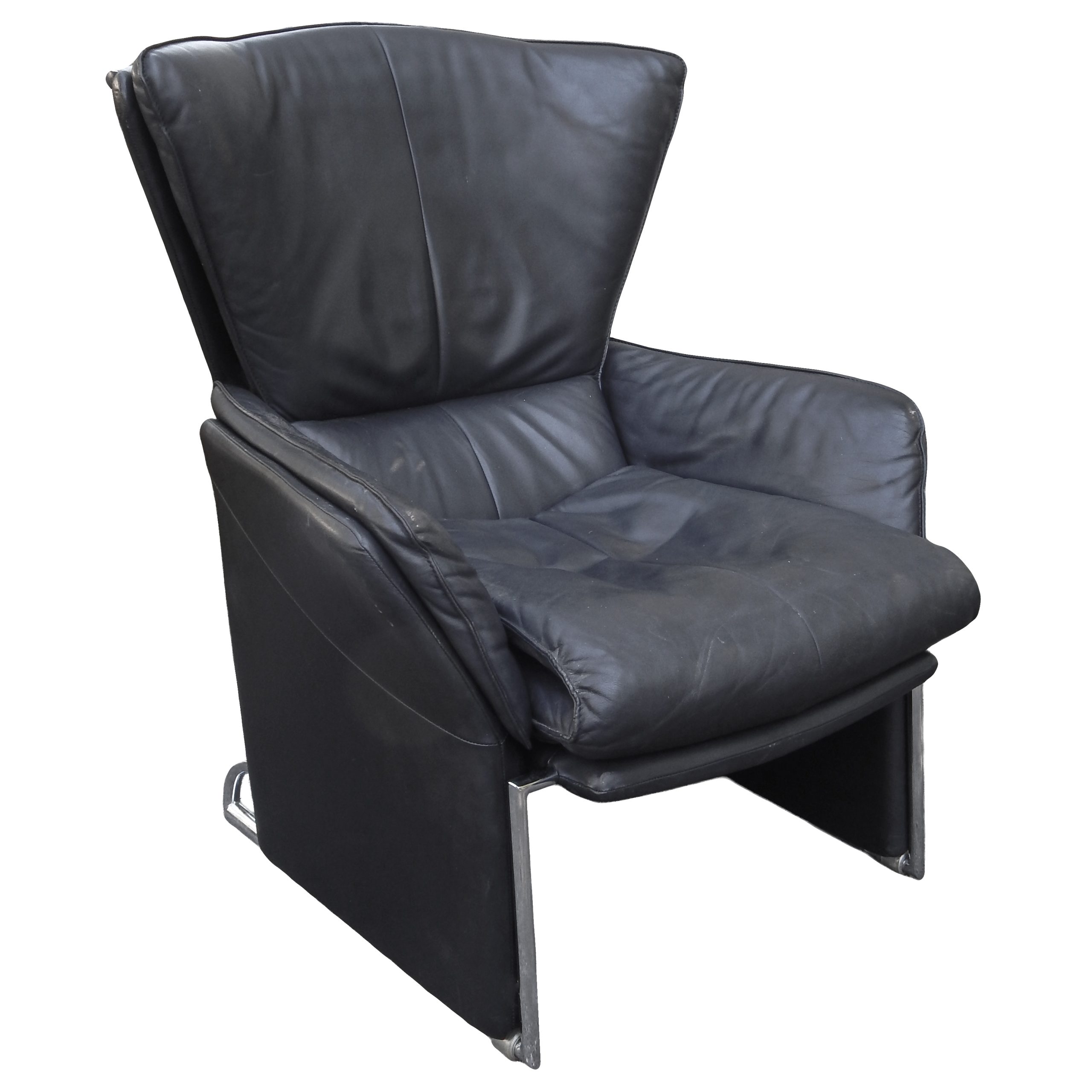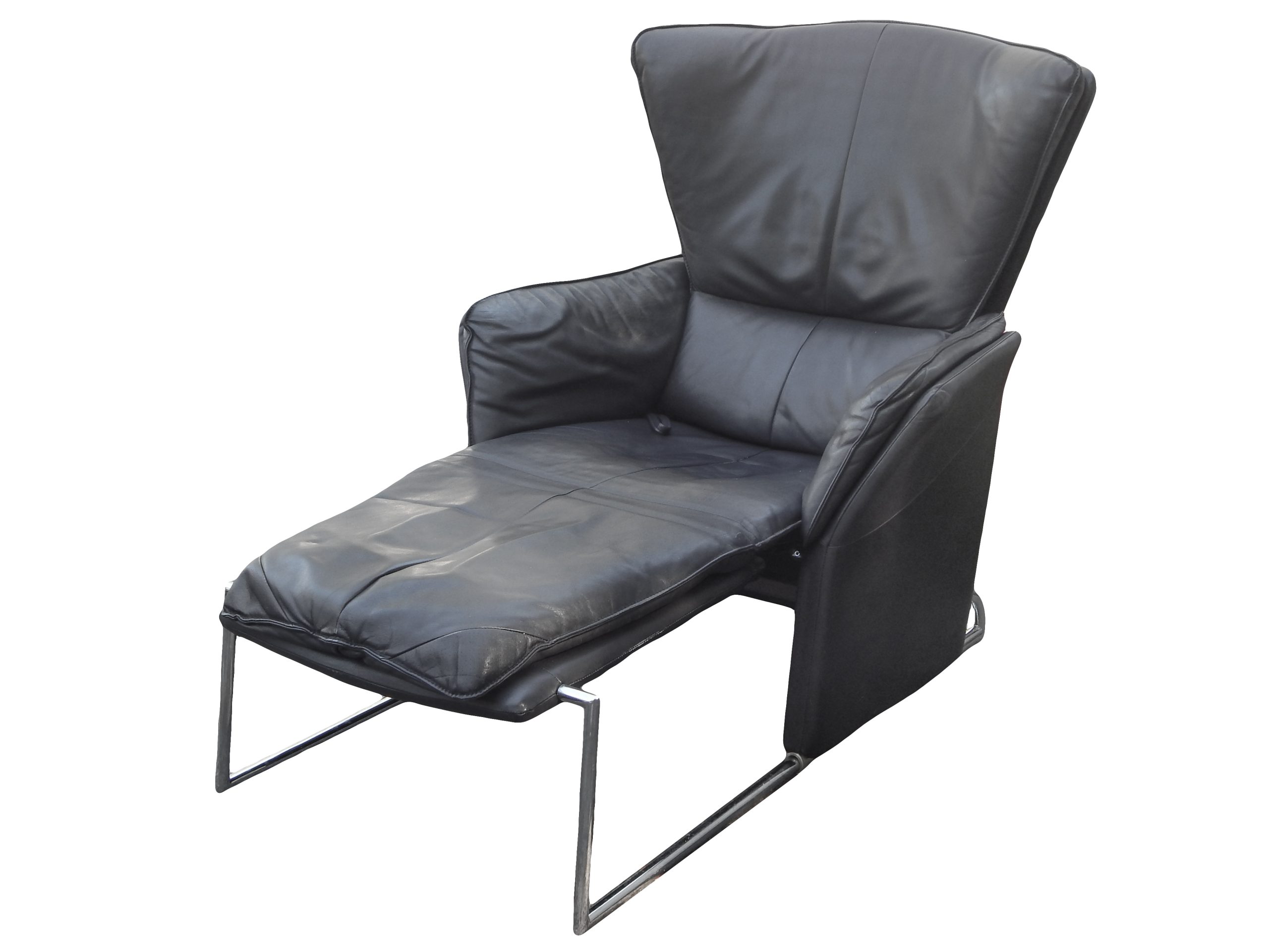 Black Leather Reclining Lounge with Pull-Out Ottoman Designed by Jürgen Lange for FSM