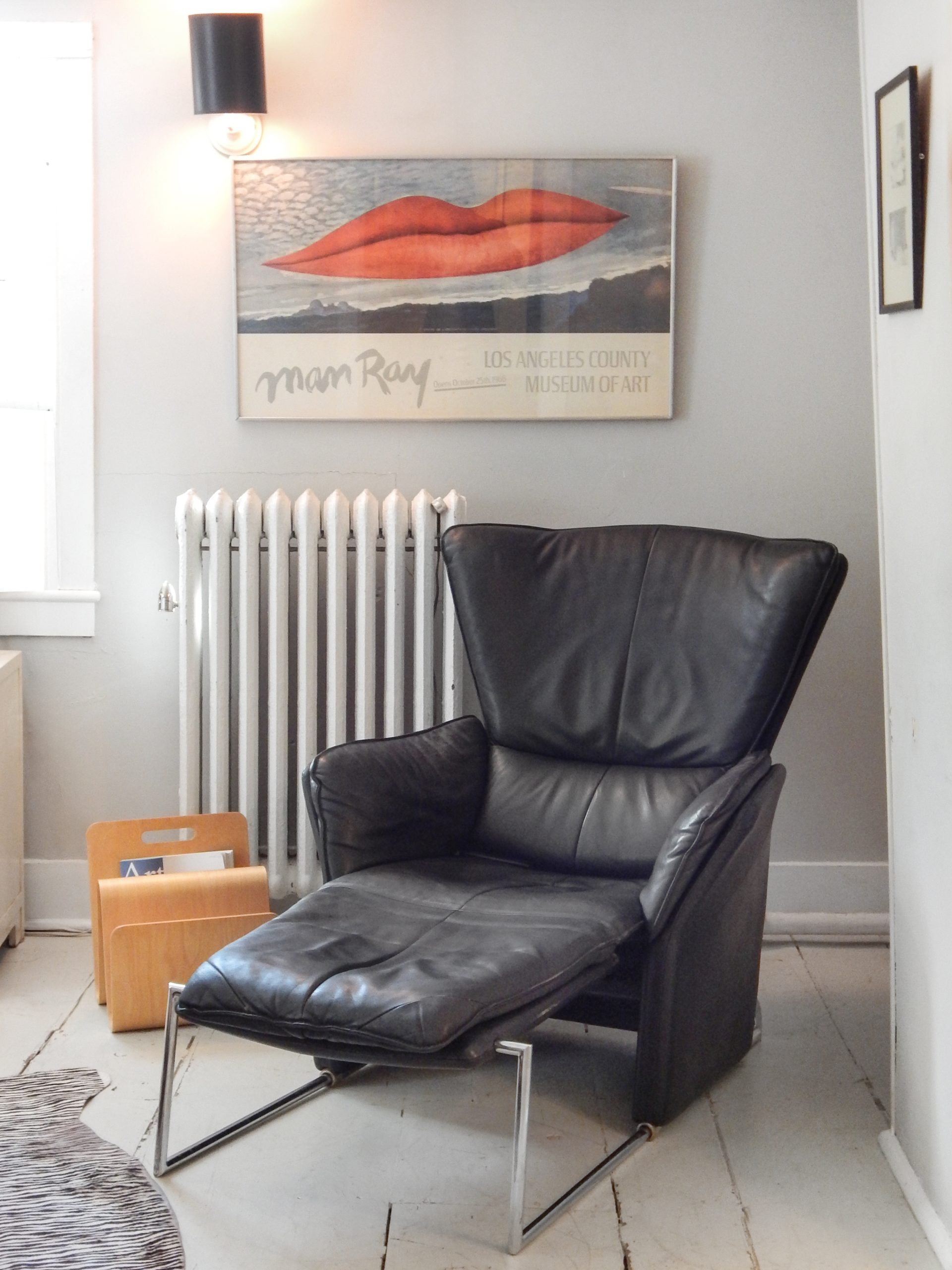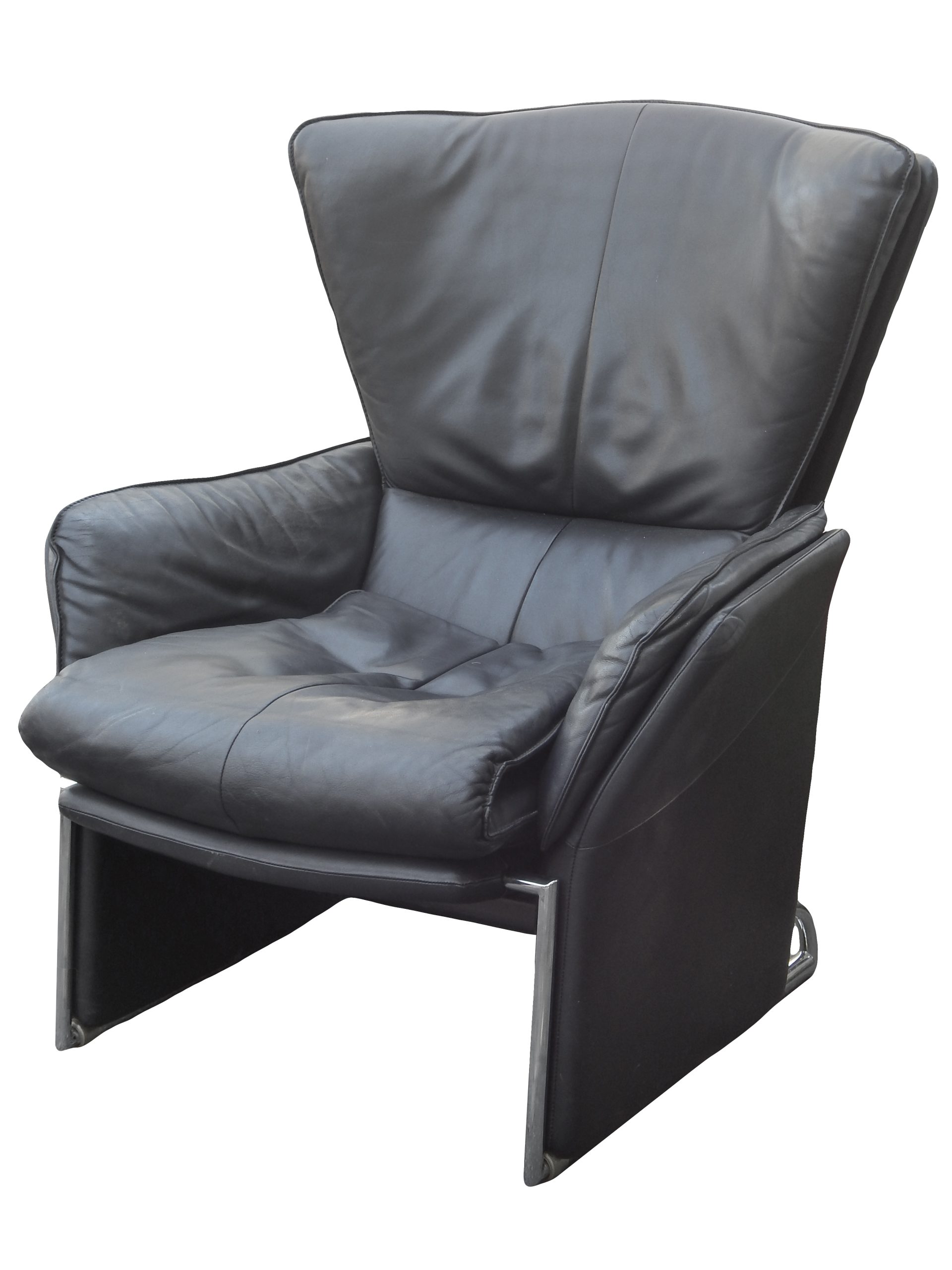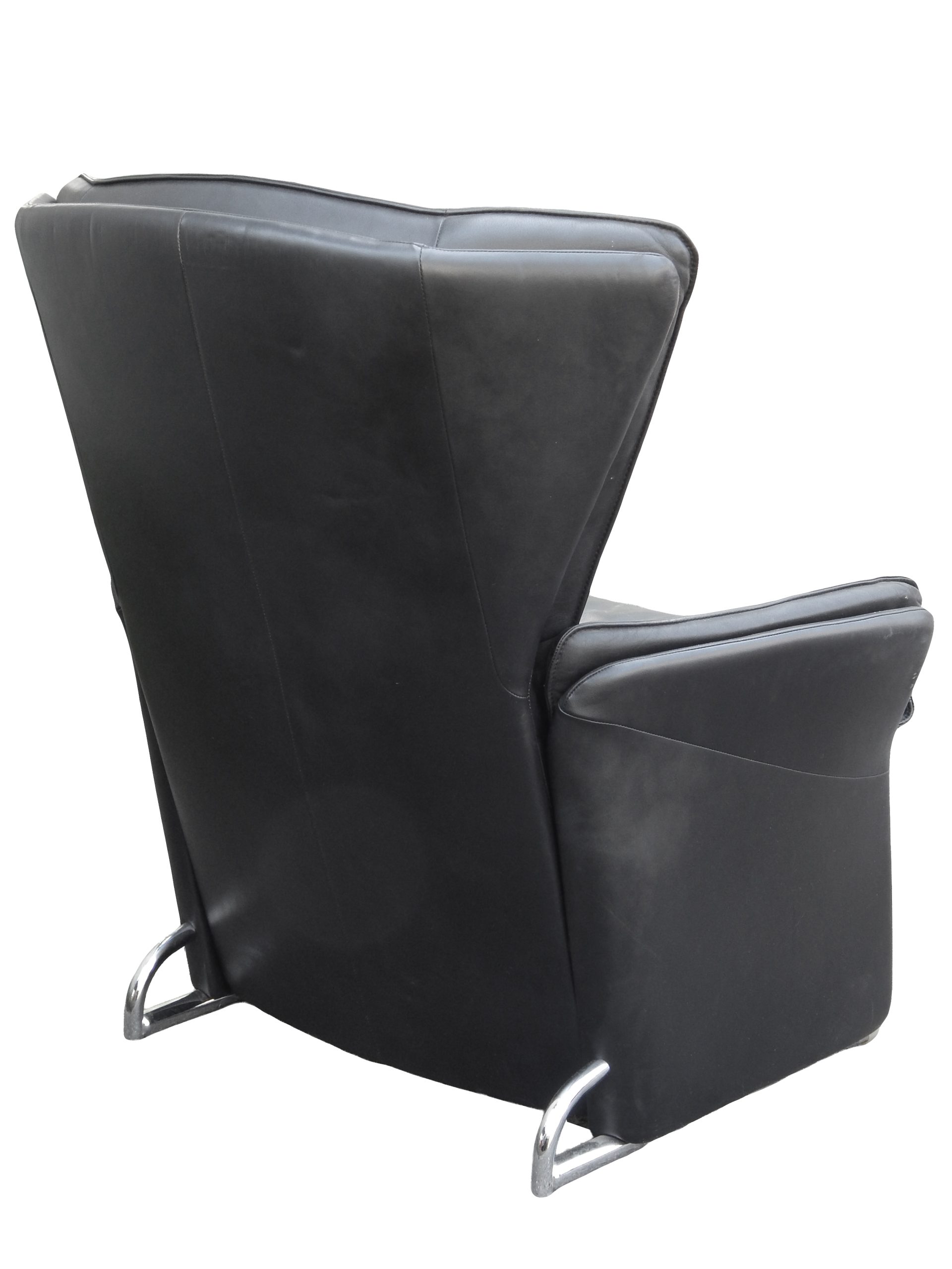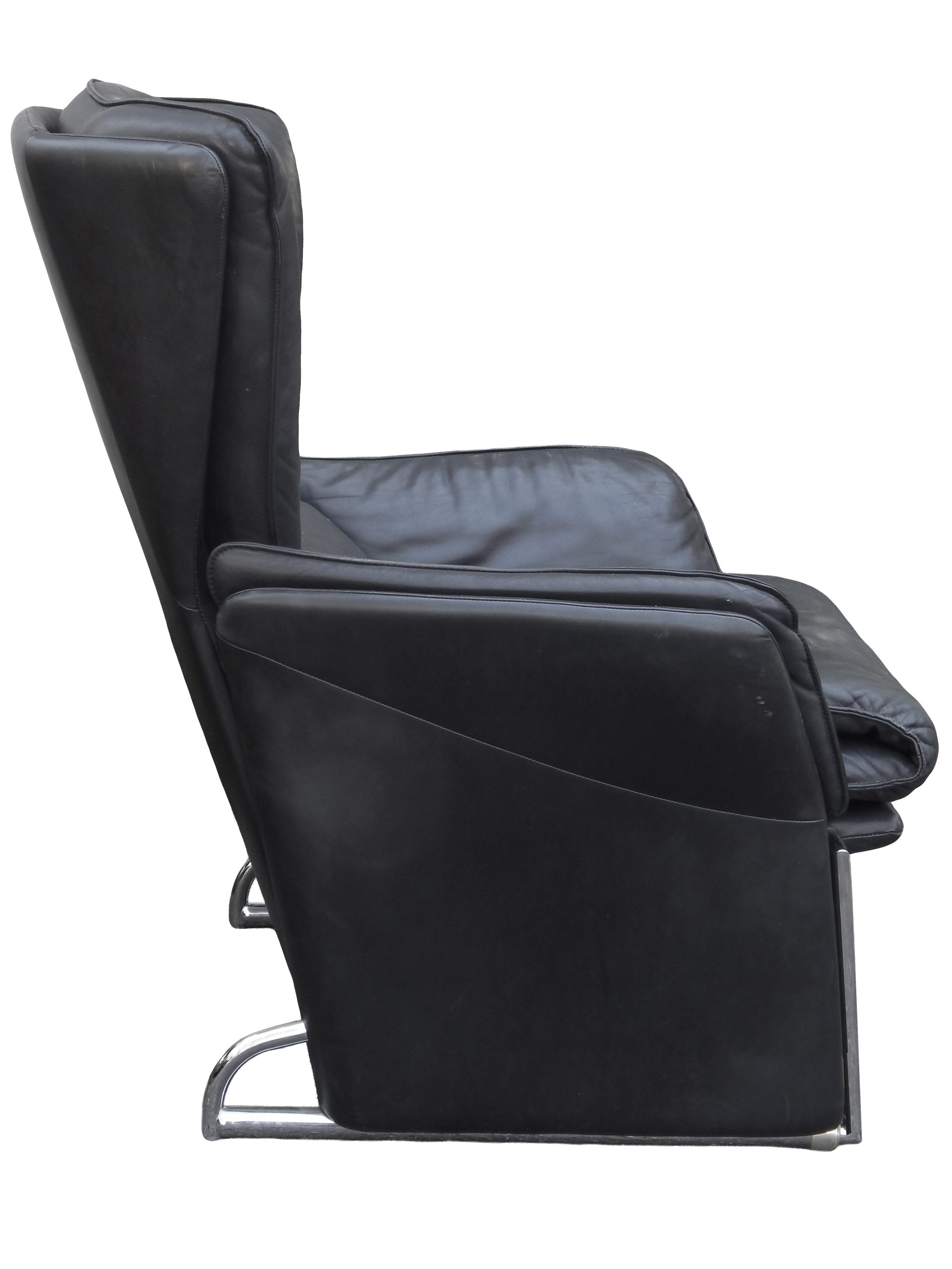 Black Leather Reclining Lounge with Pull-Out Ottoman Designed by Jürgen Lange for FSM