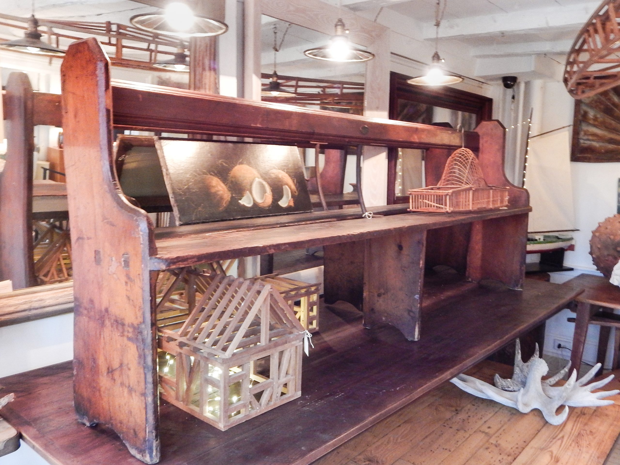 Pair of Shallow Early 20th Century, Wooden Train Depot Benches