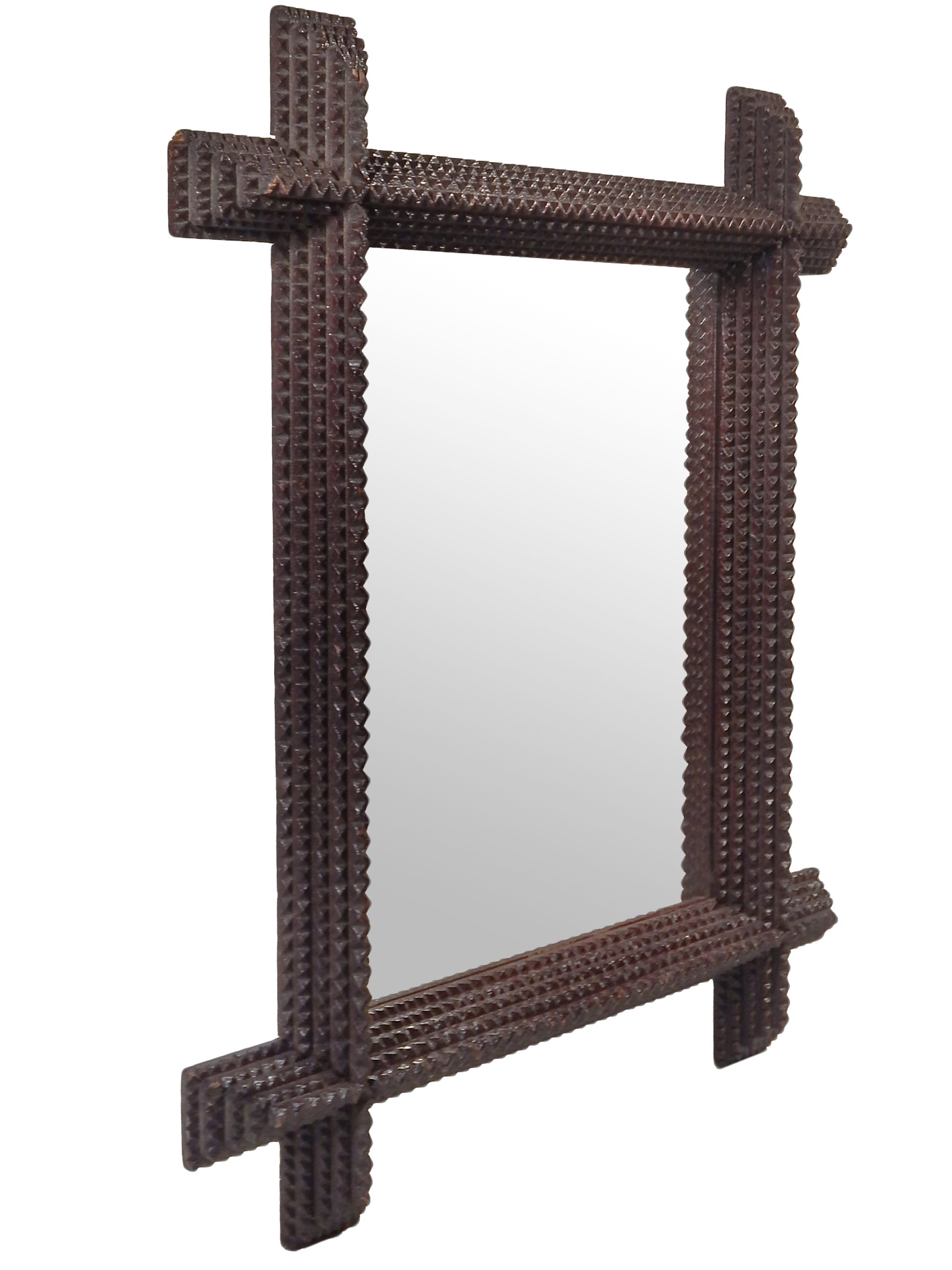 Early 20th Century, Wood Framed Tramp Art Mirror