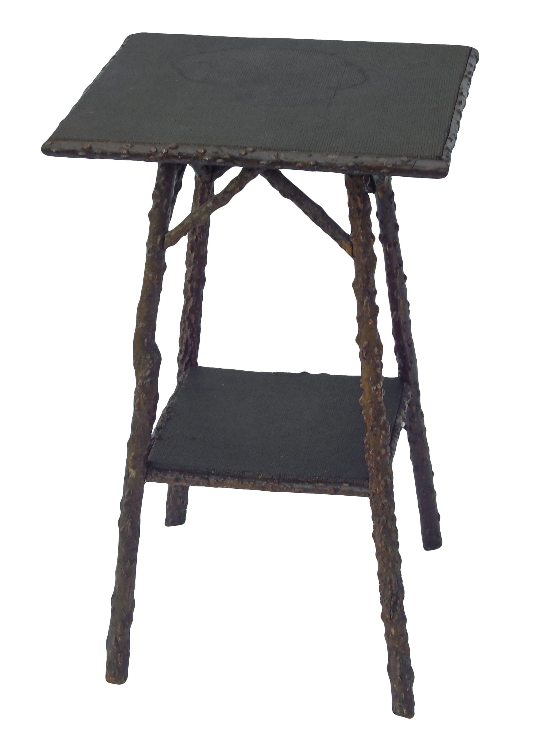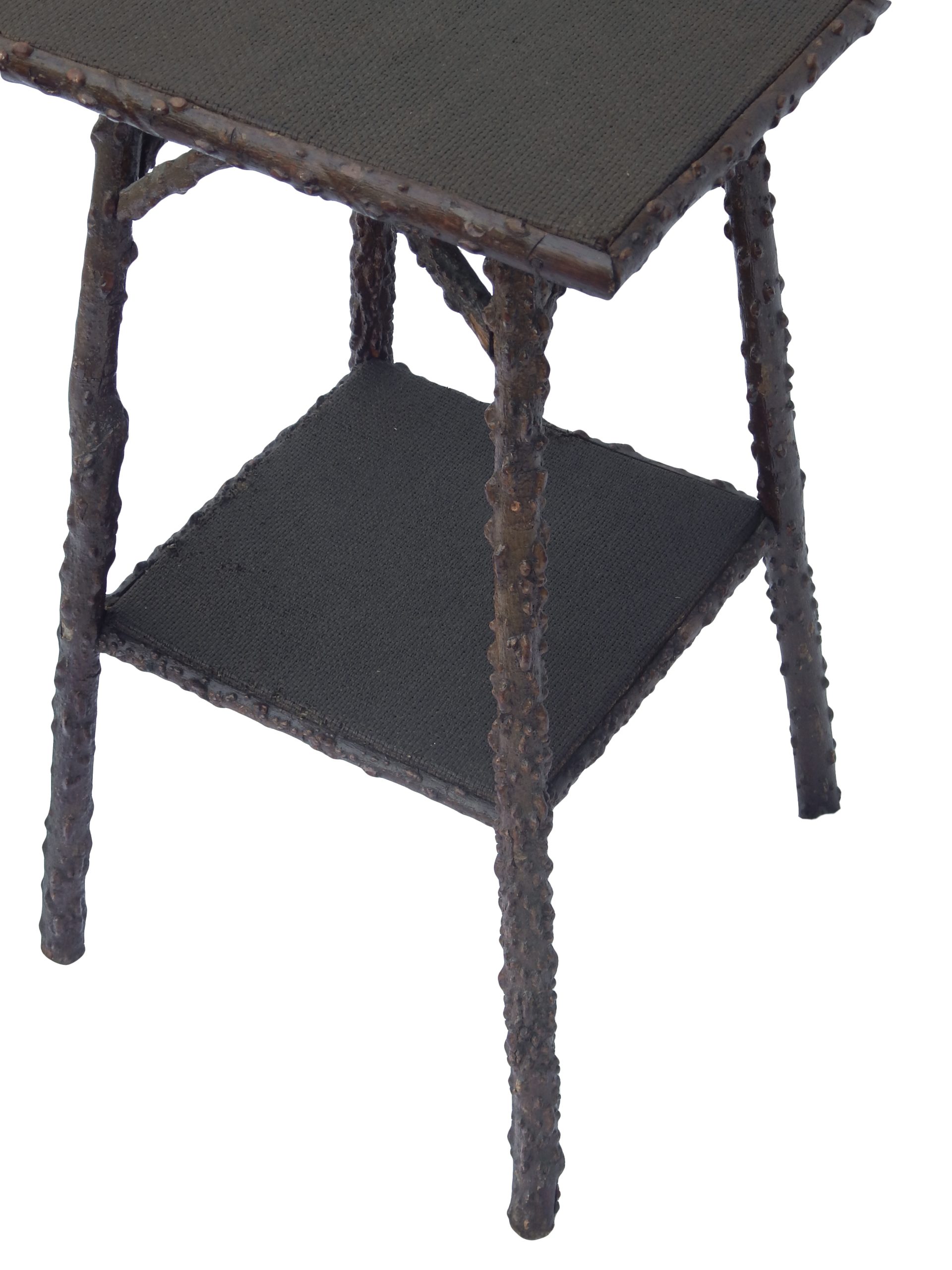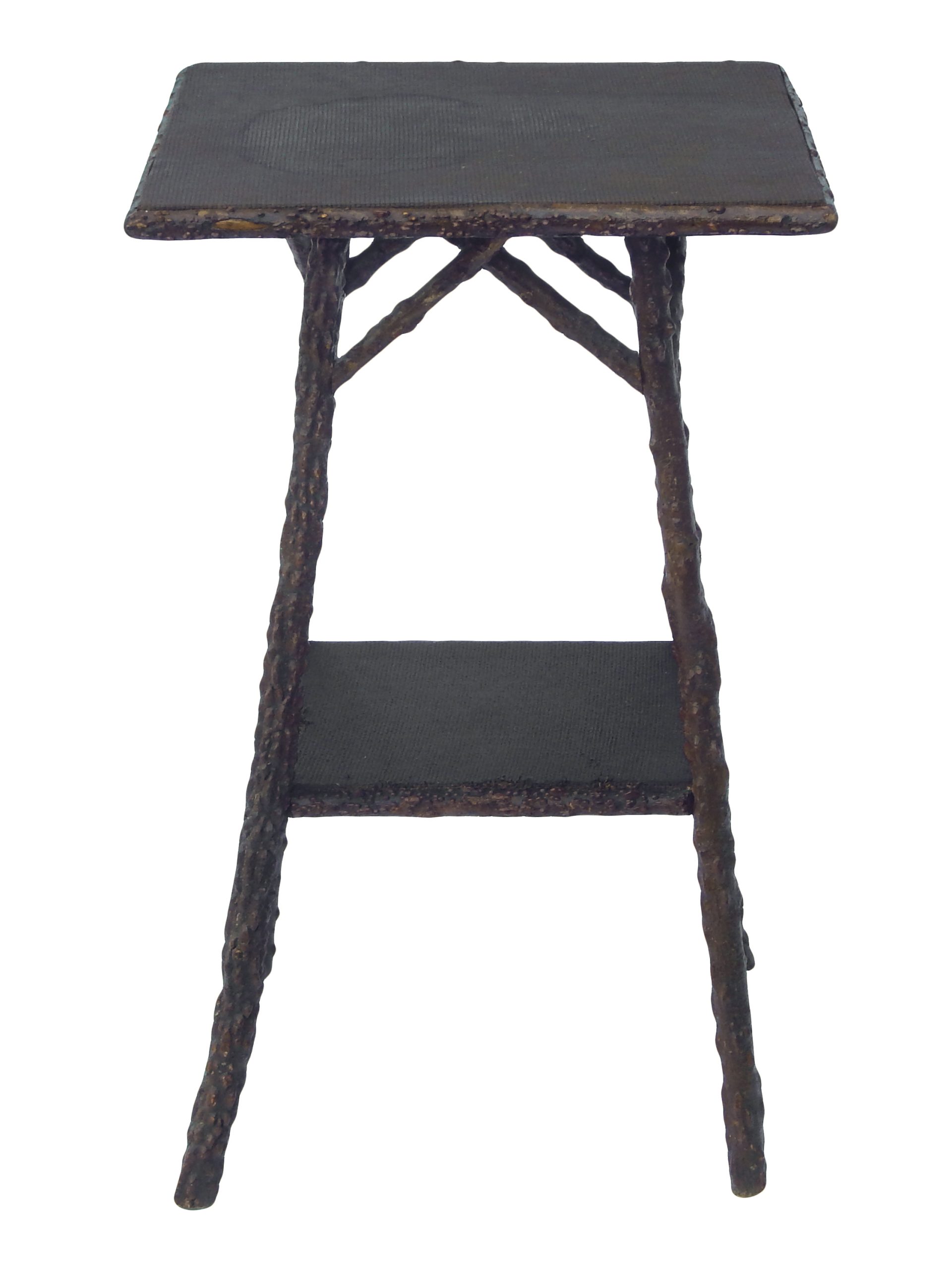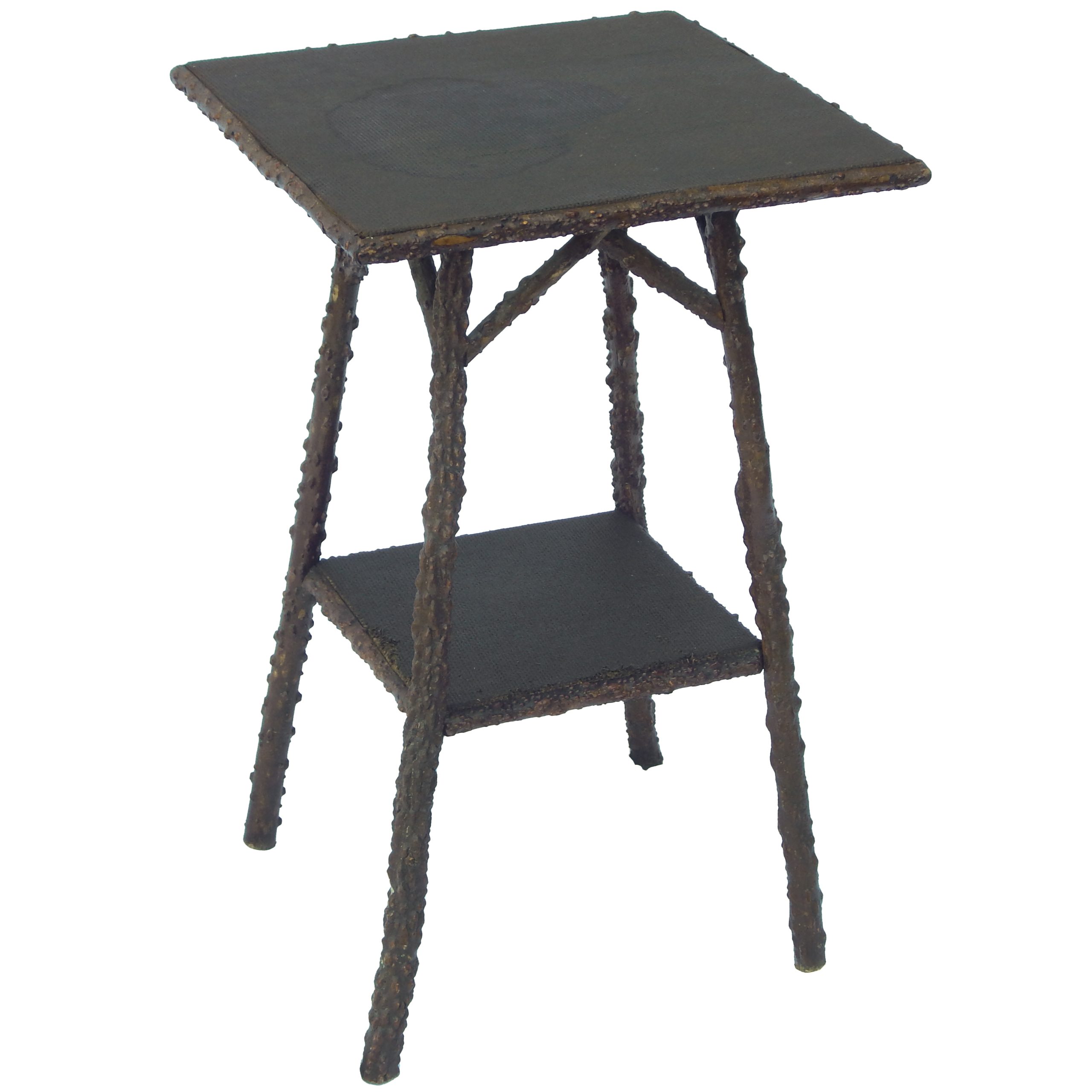 Early 20th Century, Twig & Branch Adirondack Side Table in Dark Stain & Weaved Reed Top