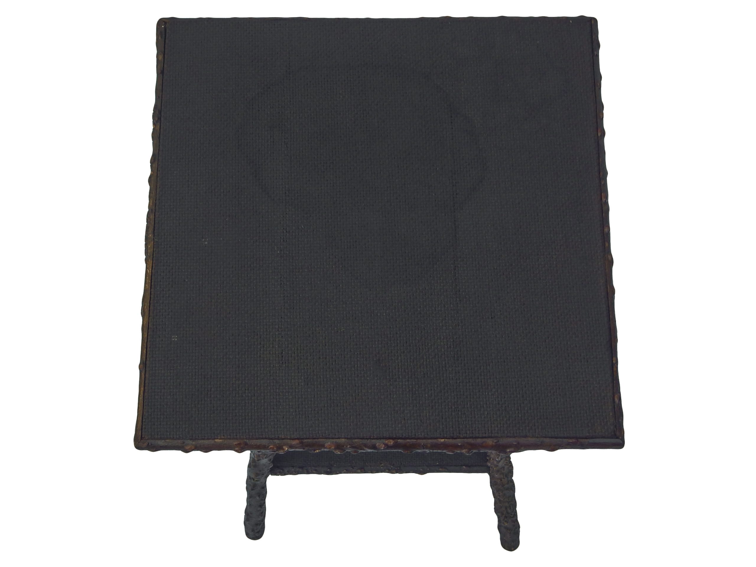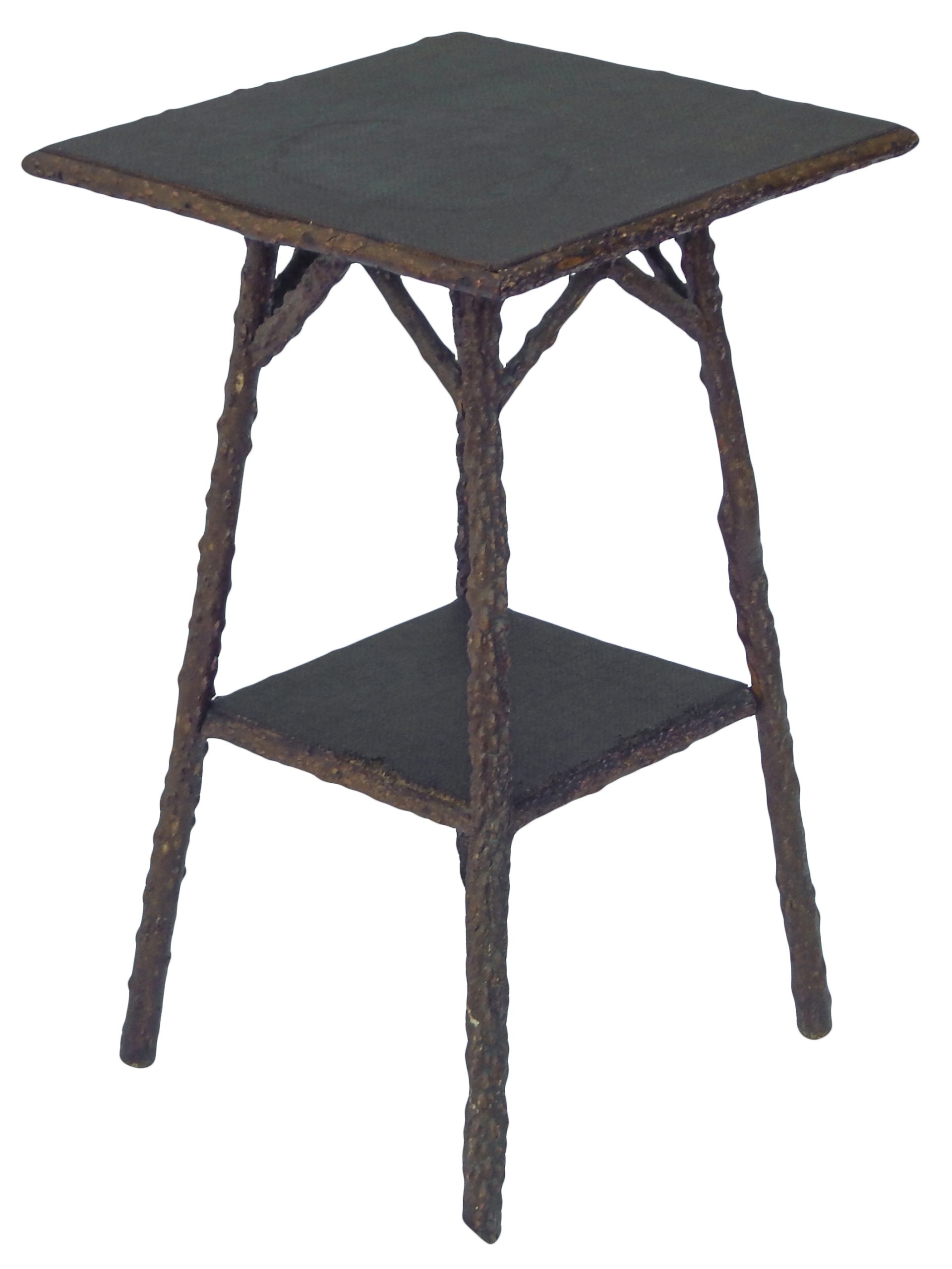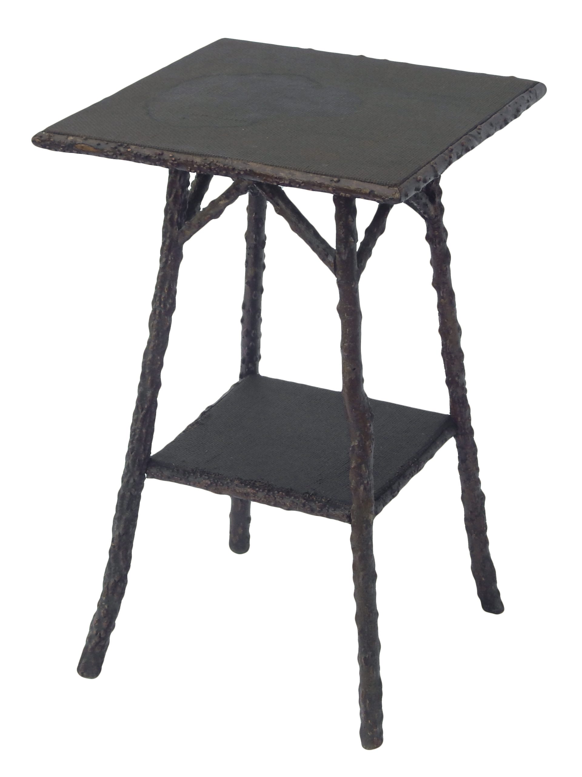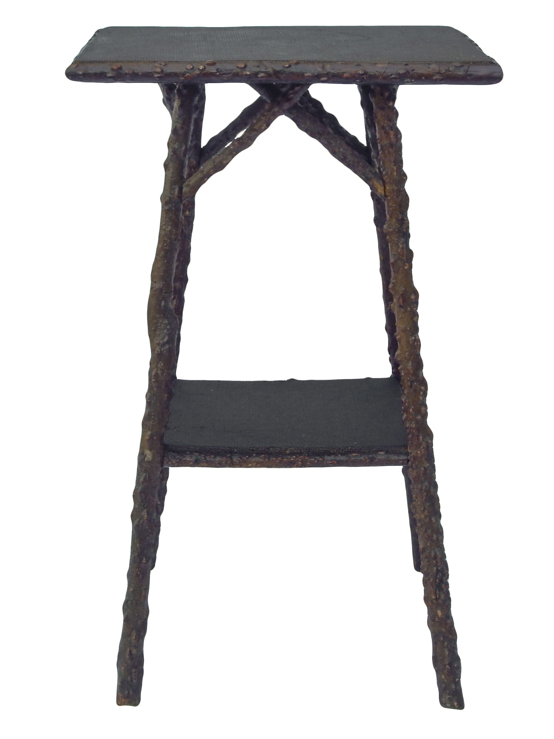 Early 20th Century, Twig & Branch Adirondack Side Table in Dark Stain & Weaved Reed Top