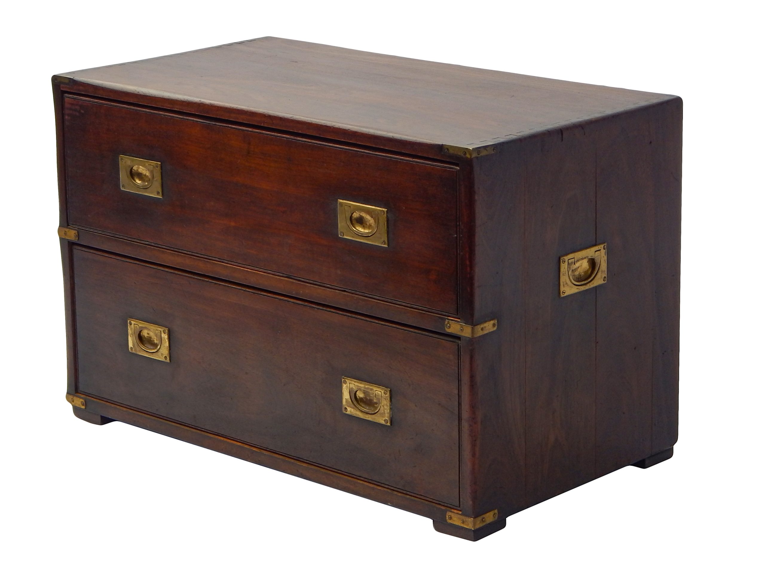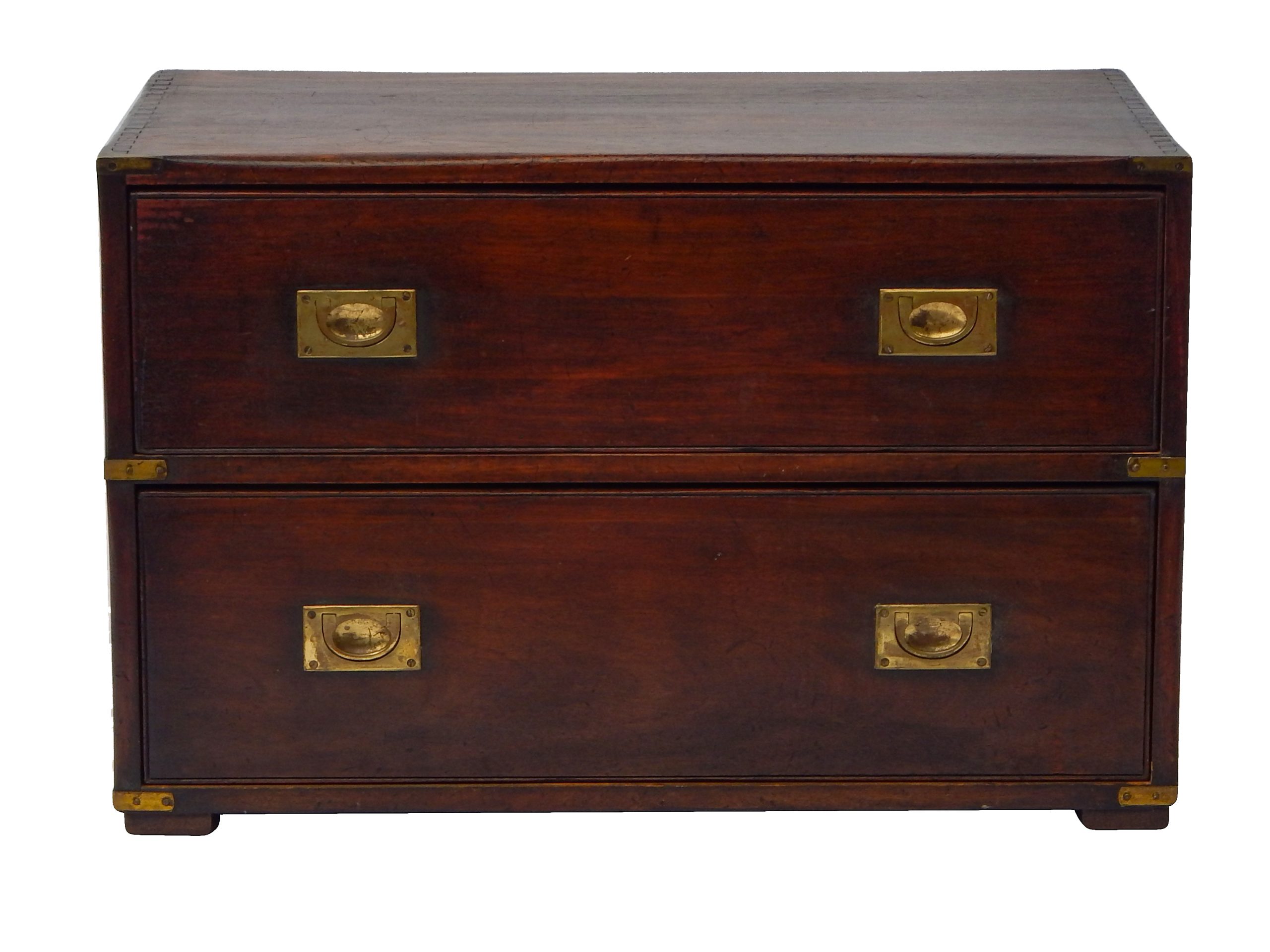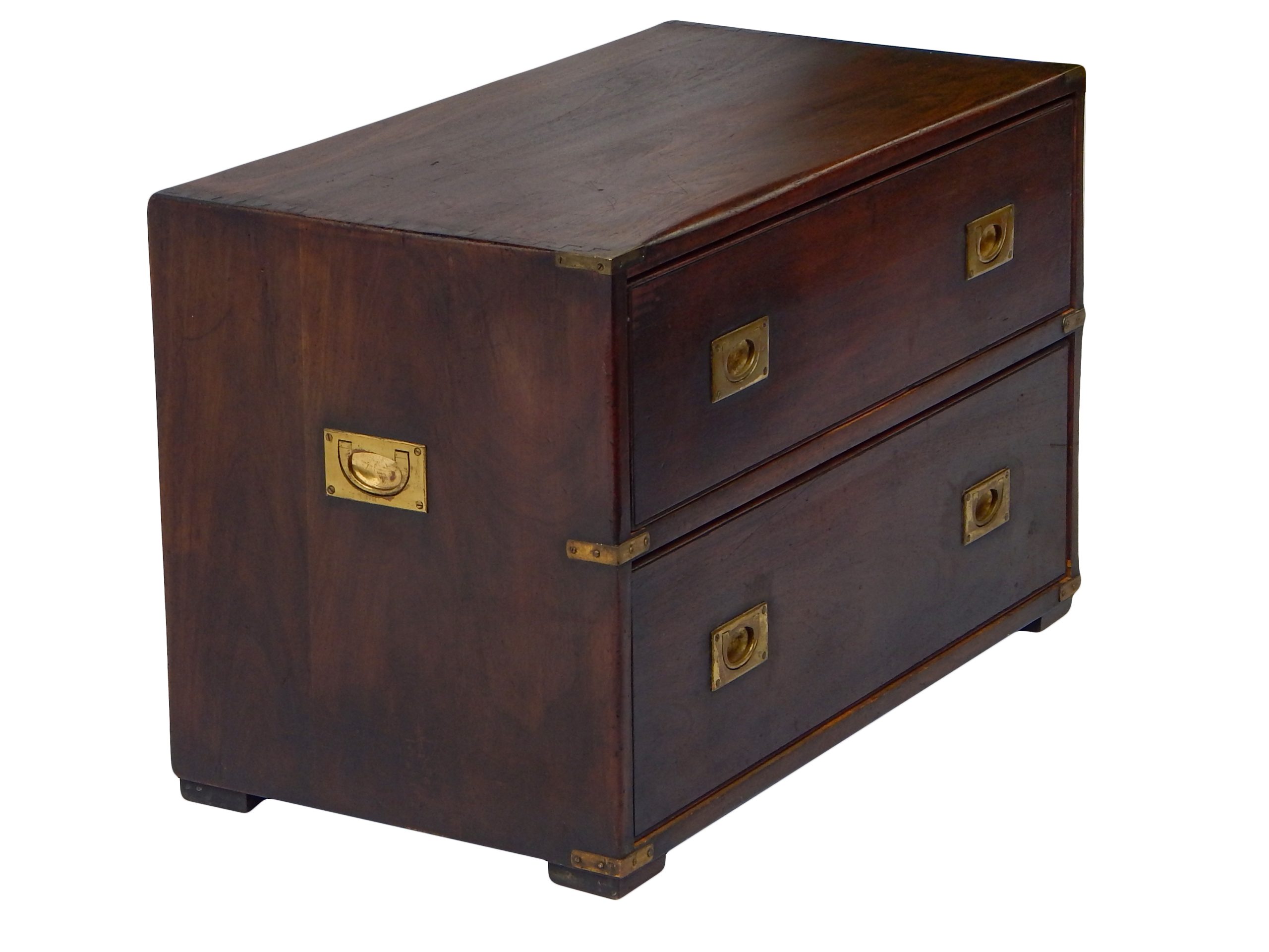 Short Two-Drawer Campaign Chest with Dark Finish & Brass Hardware