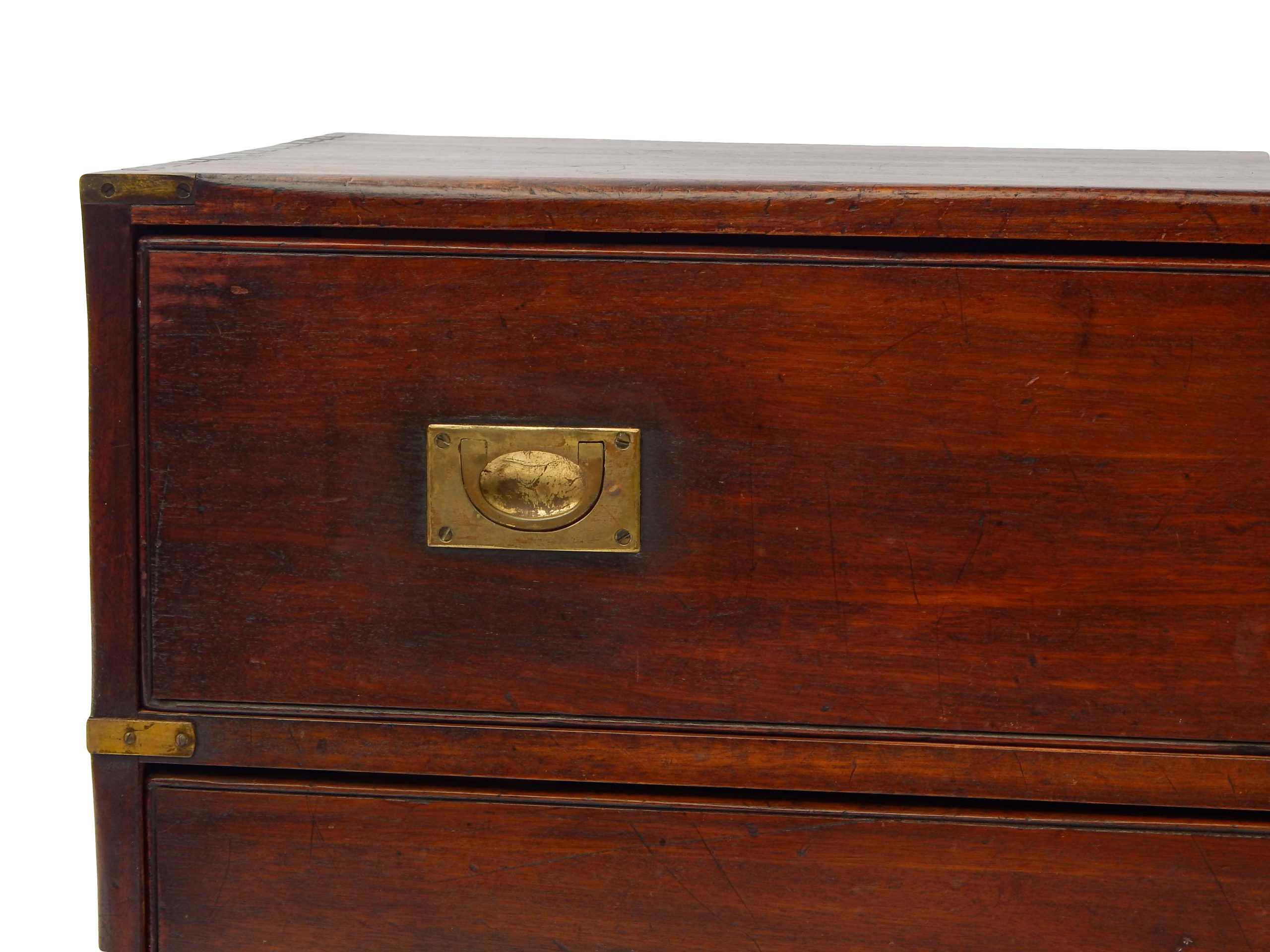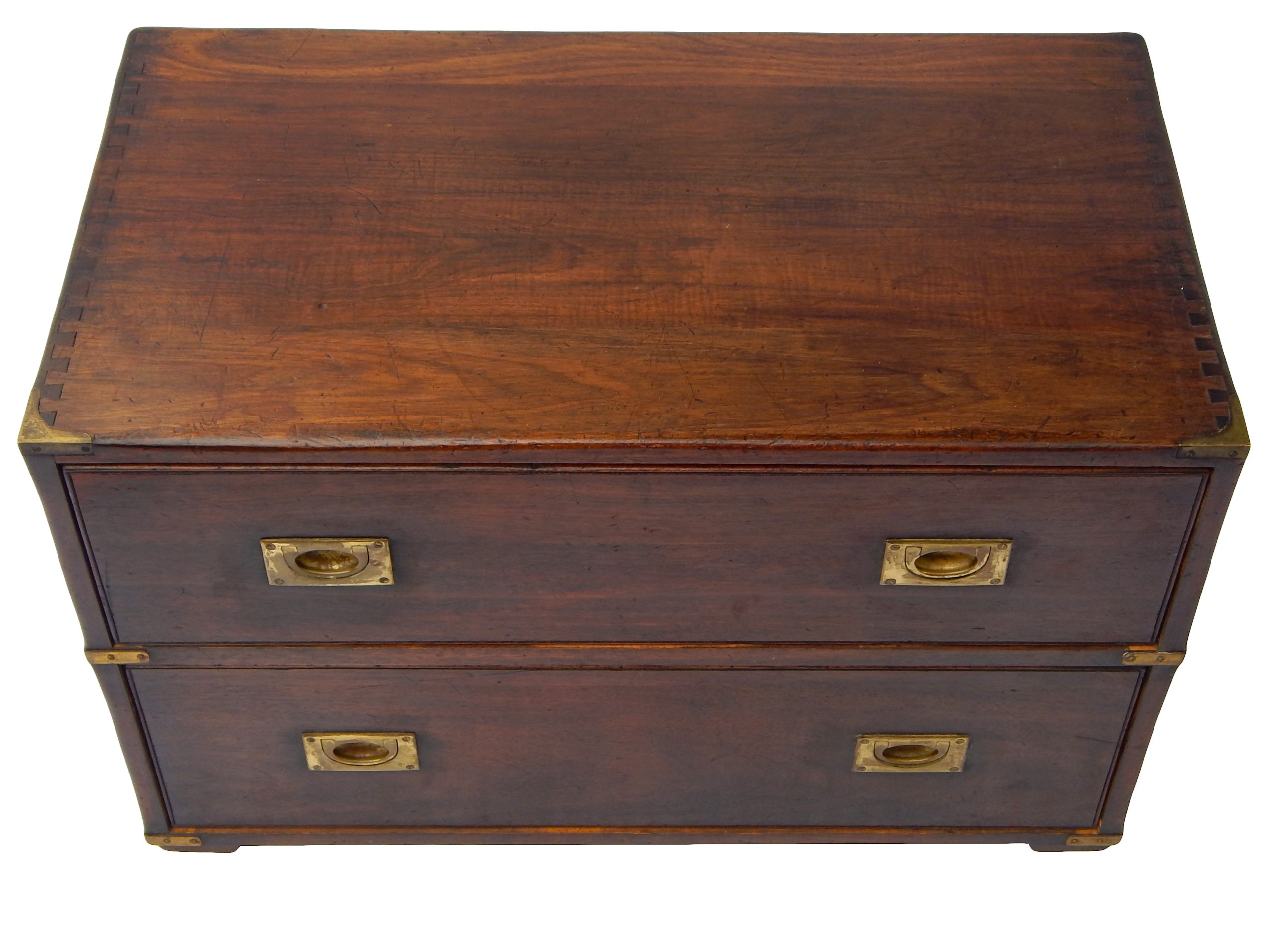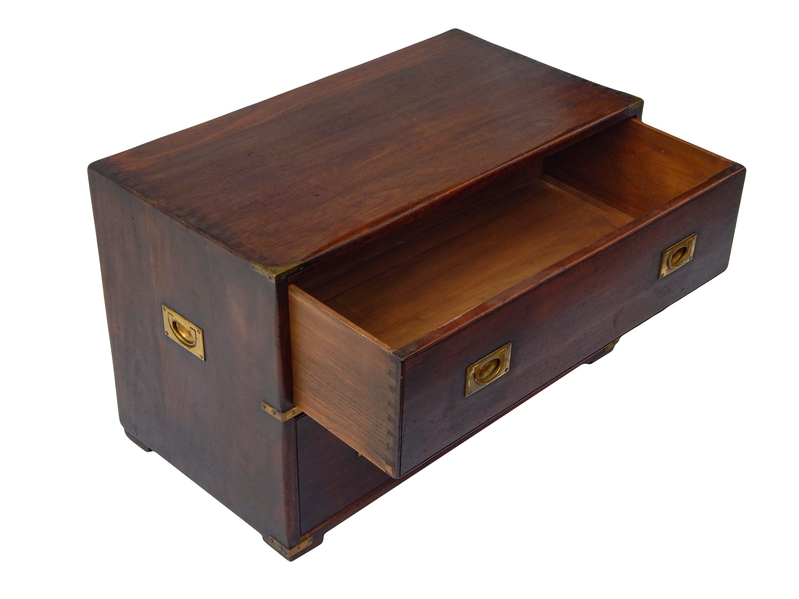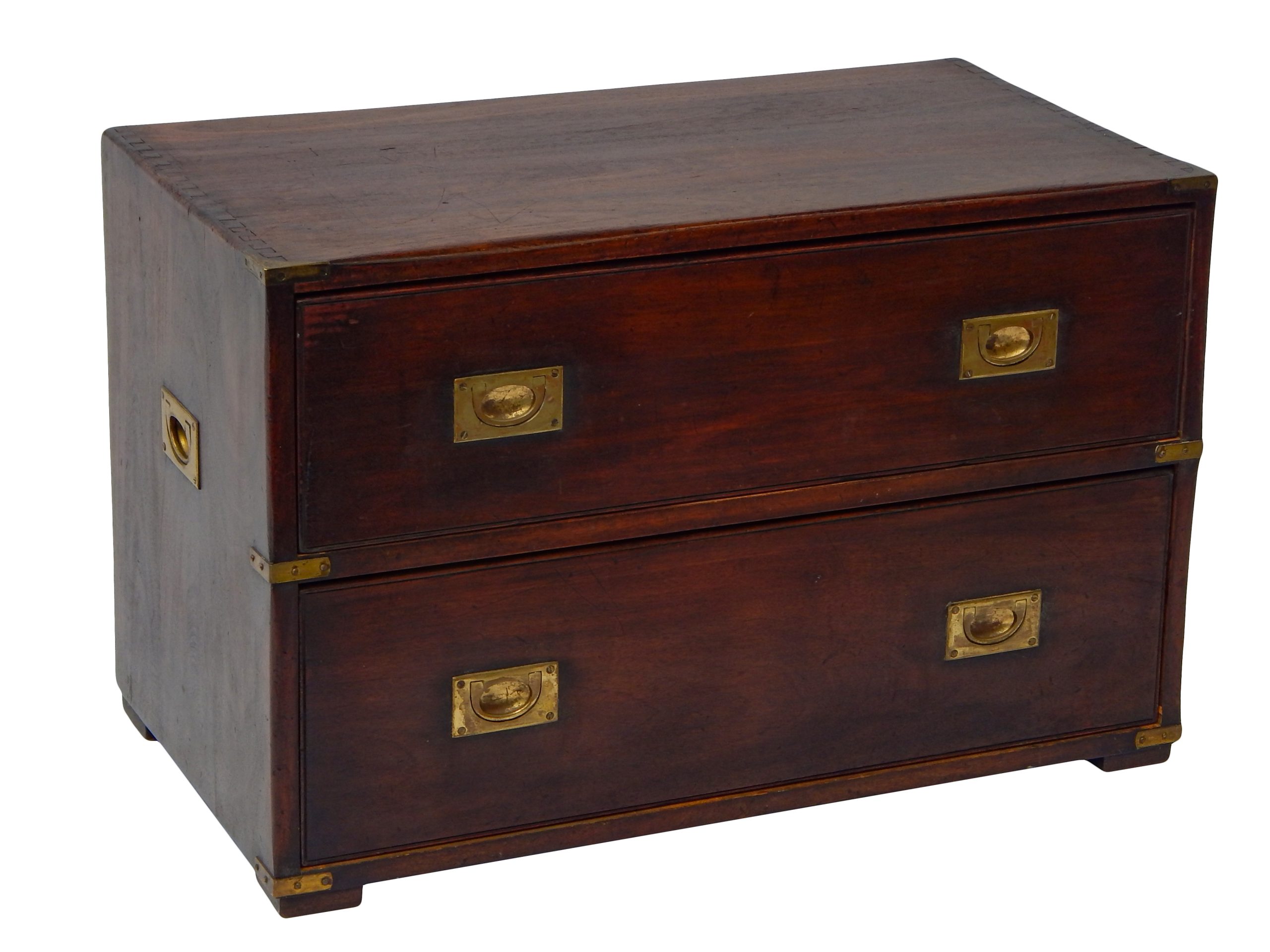 Short Two-Drawer Campaign Chest with Dark Finish & Brass Hardware