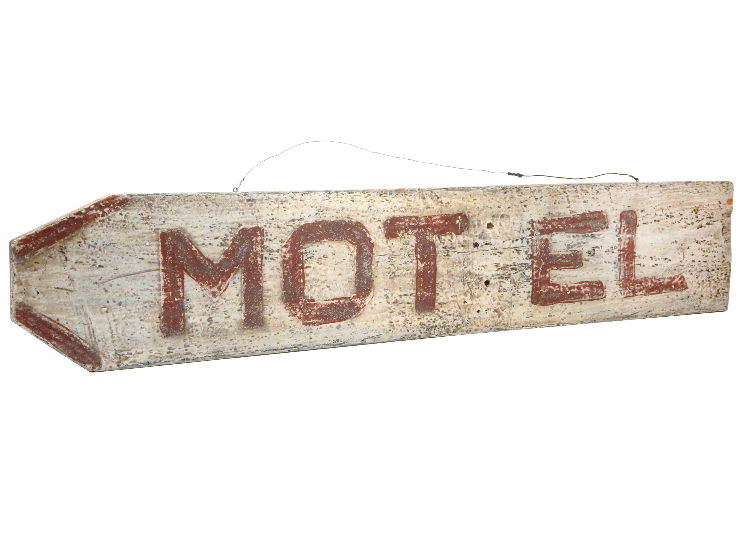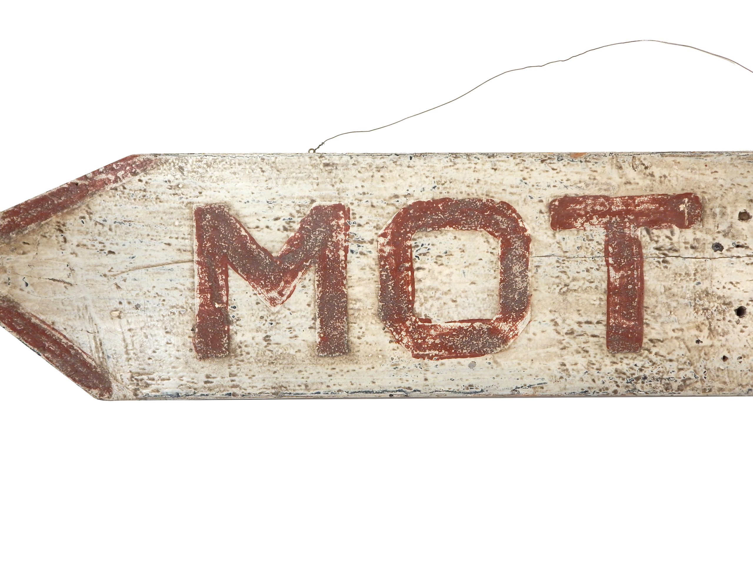 Early 20th Century, Wooden ‘Motel’ Sign in Original Paint