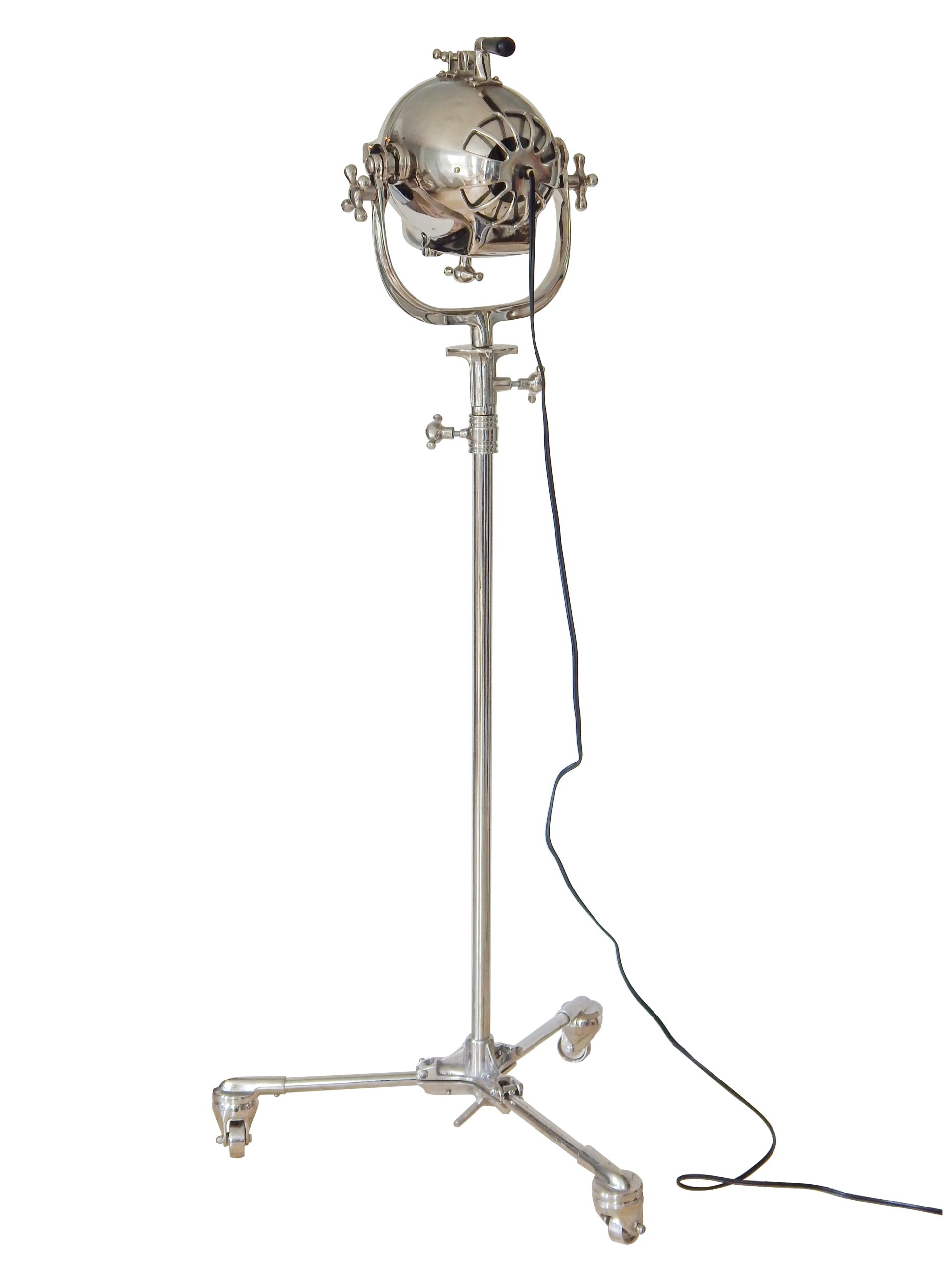 Rolling, Adjustable, Vintage Chrome Spotlight