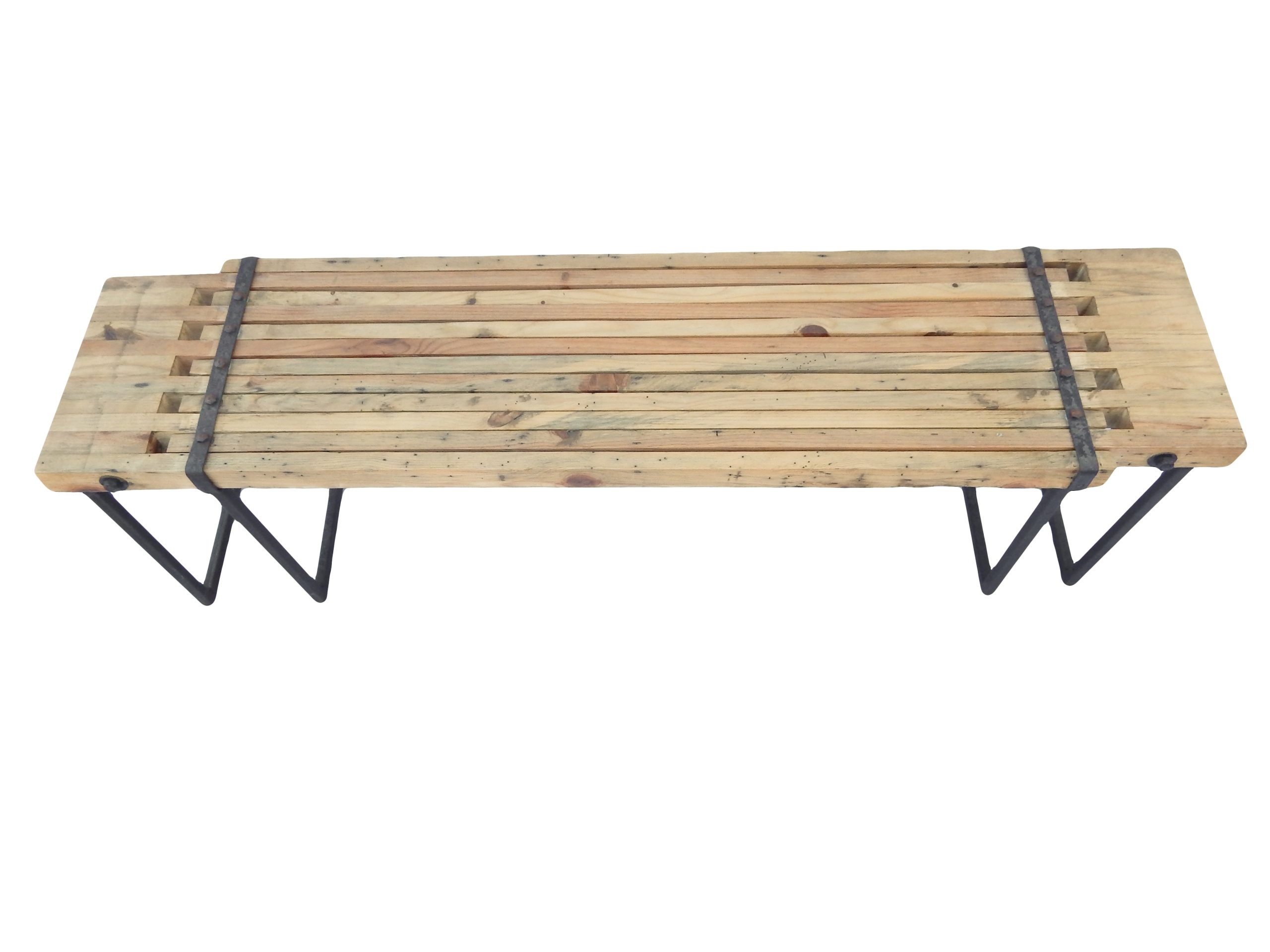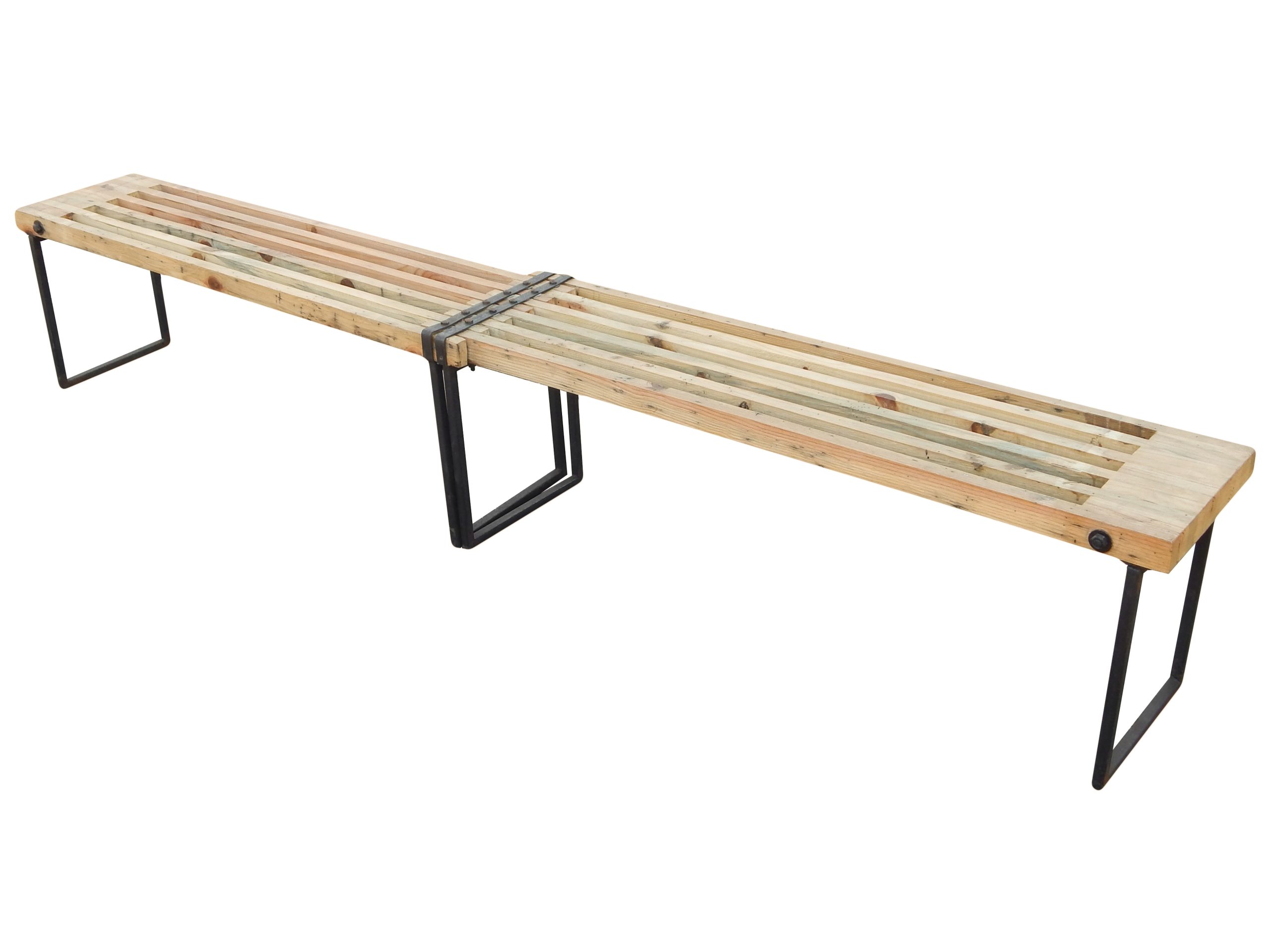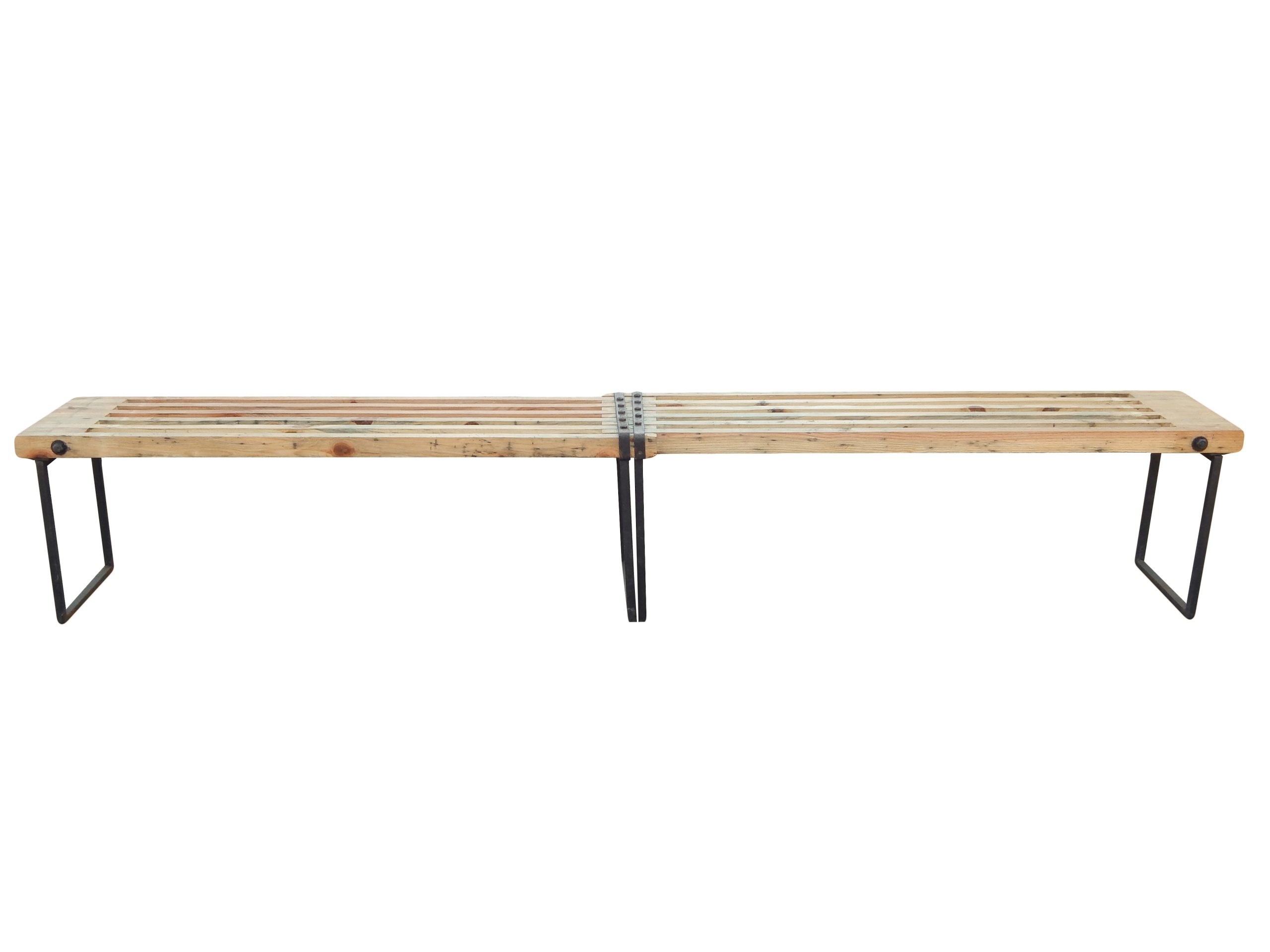 Late 20th Century, Raw Wood and Metal Extendable Slatted Bench, Inspired by George Nelson