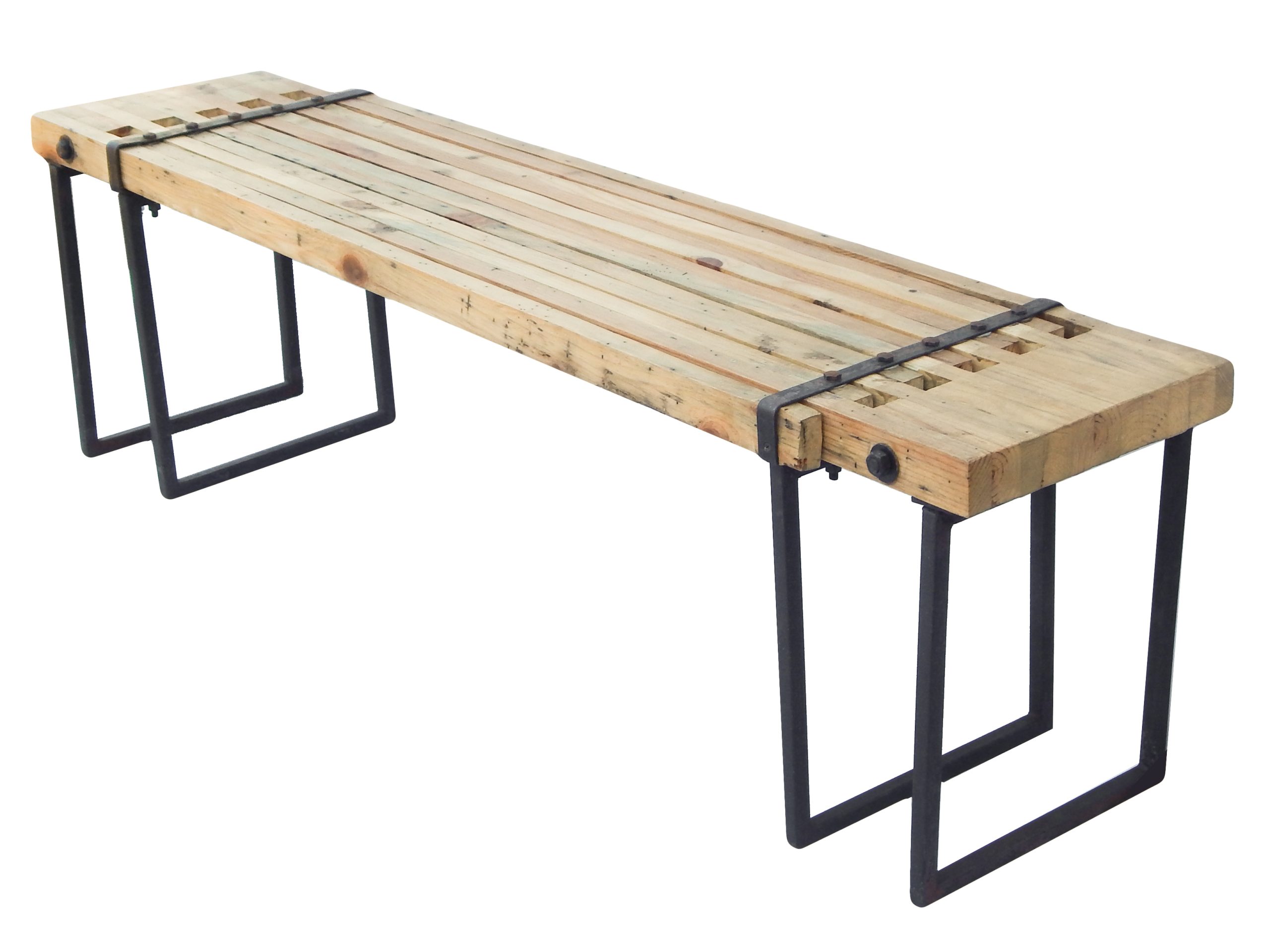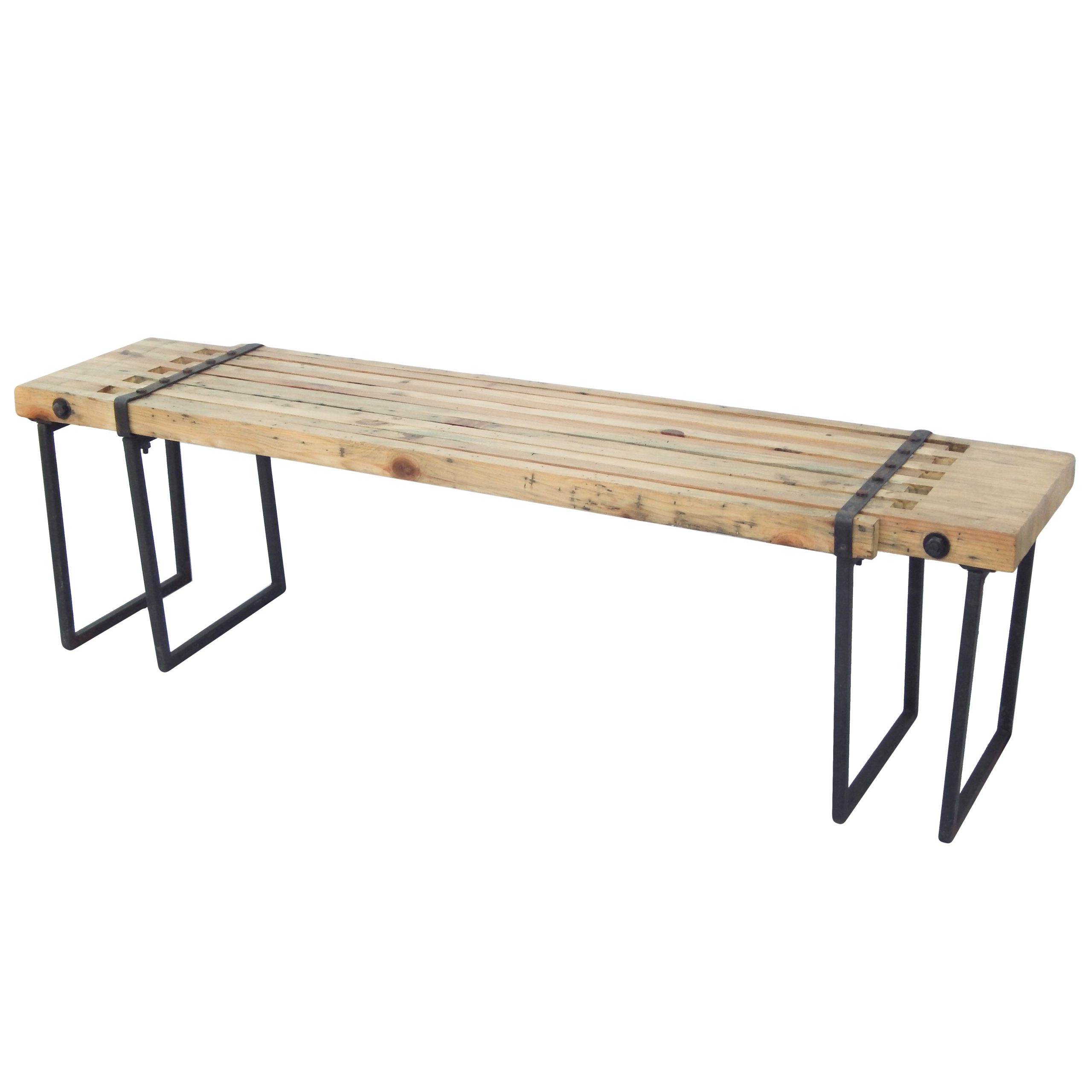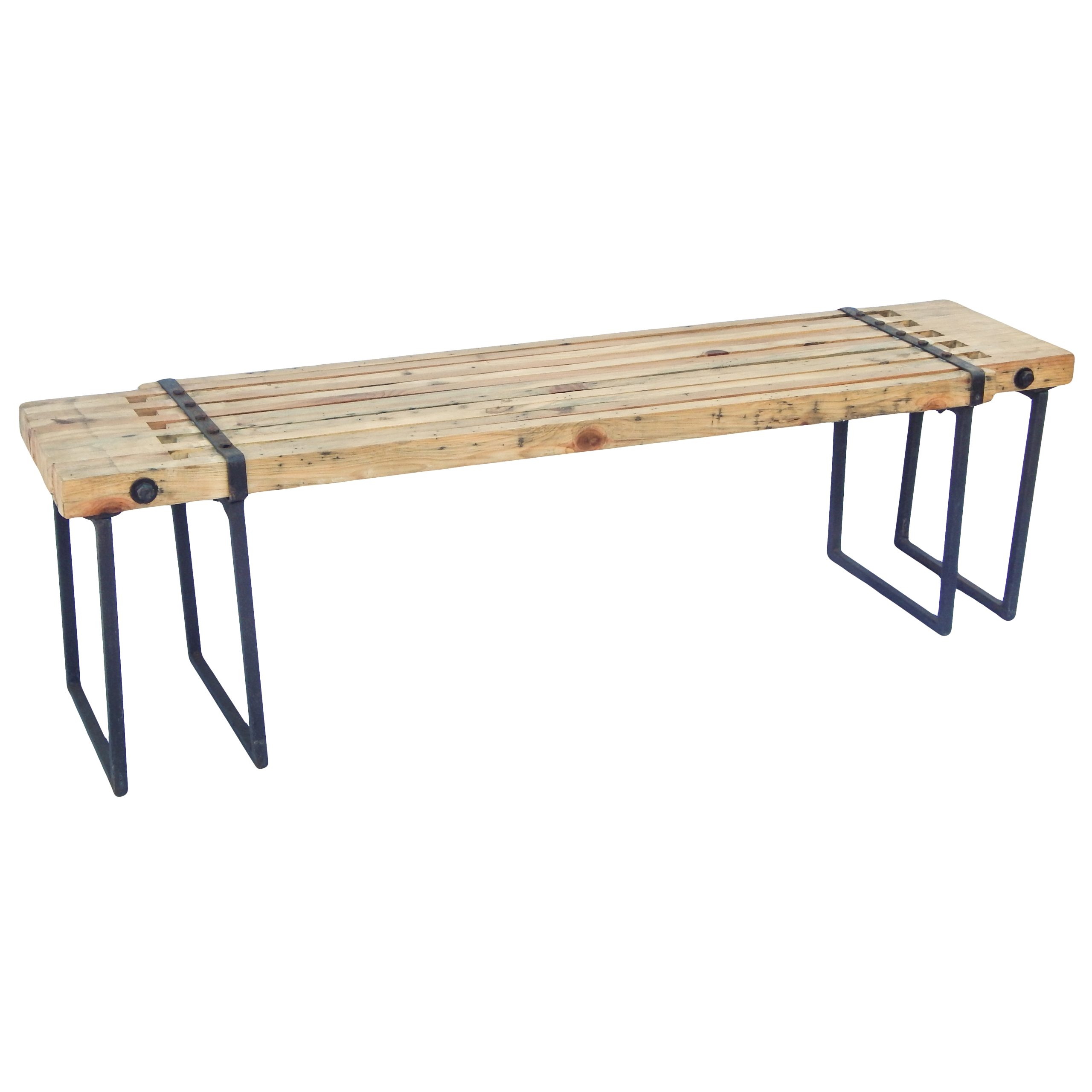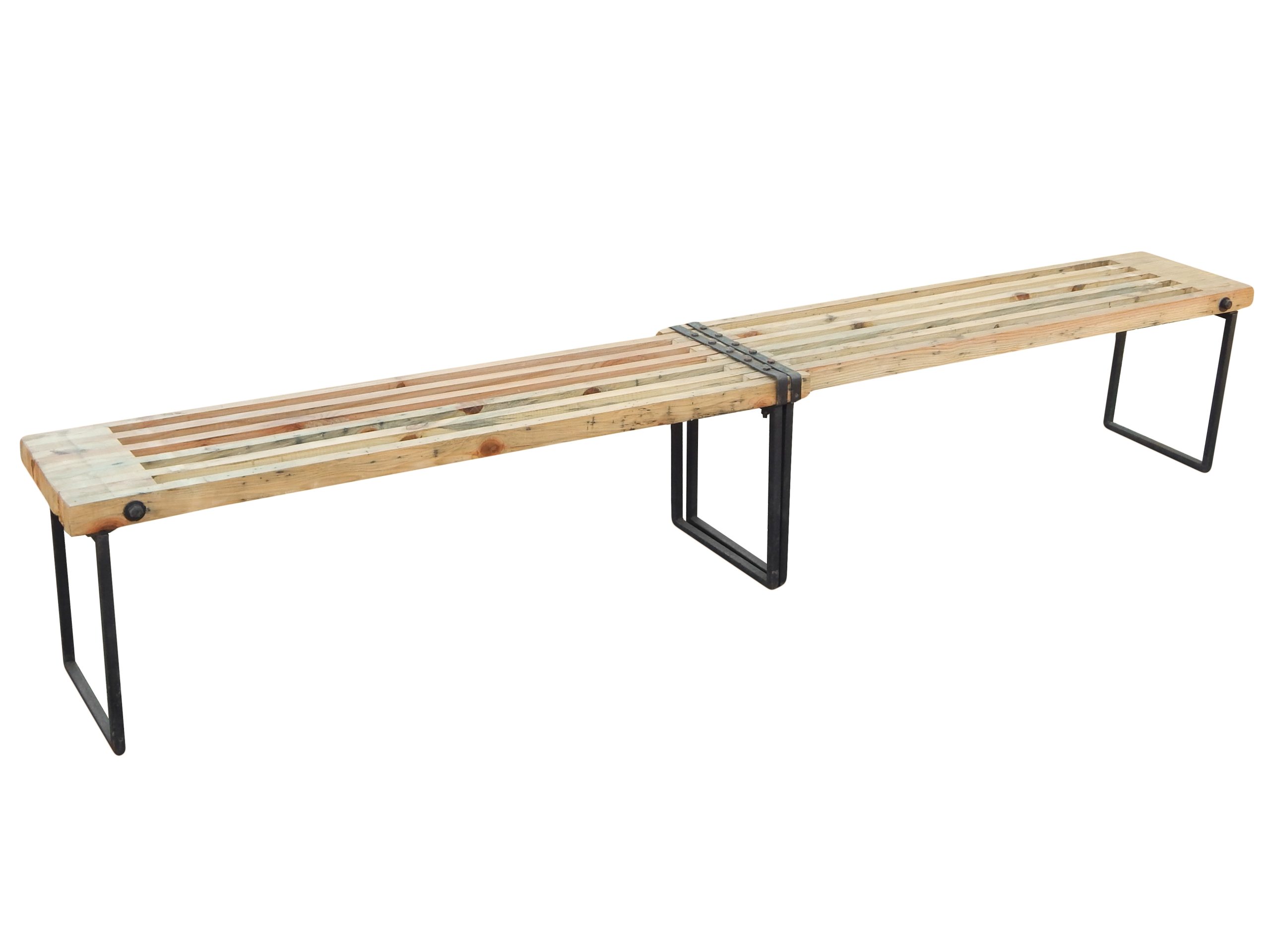Late 20th Century, Raw Wood and Metal Extendable Slatted Bench, Inspired by George Nelson