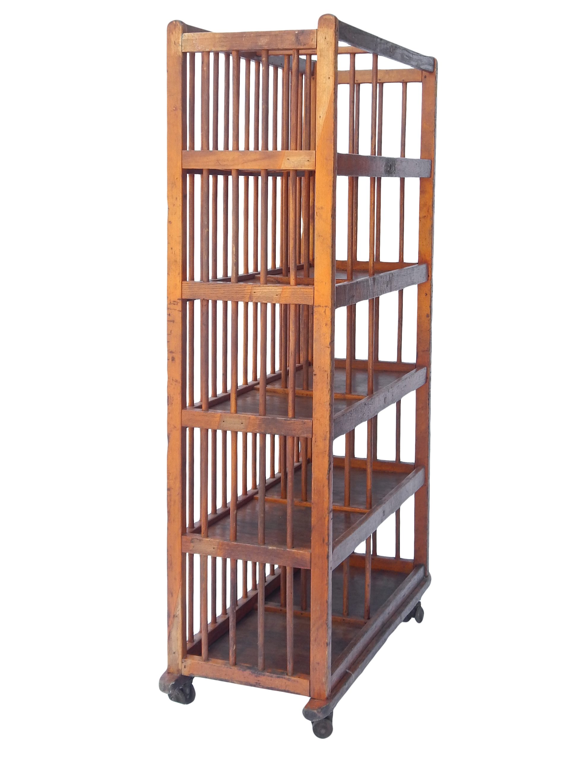 Five-Tier, Industrial Rolling Wood Storage Shelves